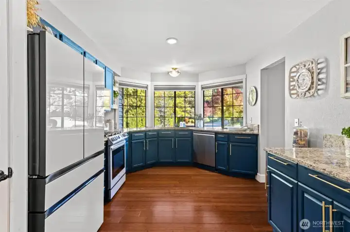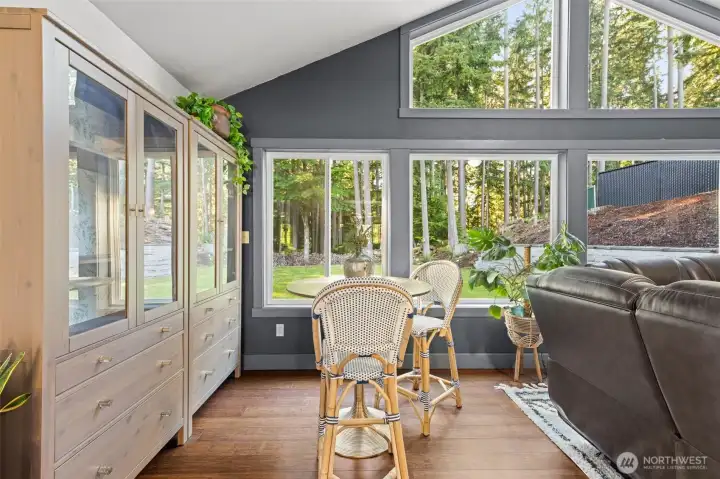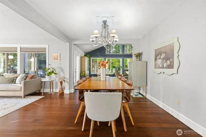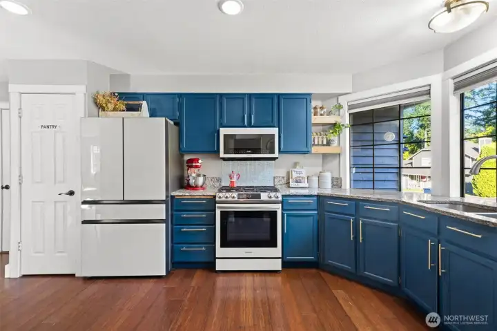 Beautifully renovated Harbour Pointe 2 story charmer with open-concept layout and seamless flow between kitchen, dining, and living spaces. Stunning bamboo flooring and large picture windows showcase the breathtaking backyard space. The refreshed kitchen features newly painted cabinets, stylish brass pulls, and modern Samsung appliances. All 3 bathrooms renovated with upgraded vanities and Italian white marble. Luxurious Kohler soaker tub upstairs. Bright master suite with private bath, walk in closet, and balcony overlooking the greenbelt. Cozy family room with gas fireplace and custom trim throughout. Expansive entertainer's deck on leveled, sunlit yard with retaining wall. Energy-efficient windows frame forest views. Top-rated schools!
