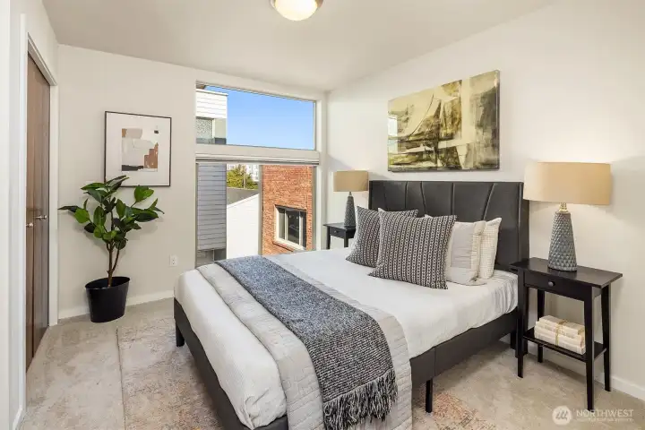 Experience modern living in the heart of Ballard in this striking, design-forward residence. A dramatic lofted entry introduces airy, light-filled spaces, featuring 10’+ ceilings on the first level and radiant in-floor heating on every floor. The chef’s kitchen pairs sleek quartz counters with a gas Bertazzoni range and walk-in pantry, flowing seamlessly into the generous living and dining areas. Upstairs, the primary suite offers a spa-like bath with a luxuriously sized shower and vanity, while secondary bedrooms provide ample space and style. The expansive rooftop deck captures sweeping territorial & Mt. Rainier views. Attached garage with great storage and a short jaunt to shops, dining, and transit in vibrant downtown Ballard.