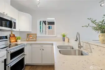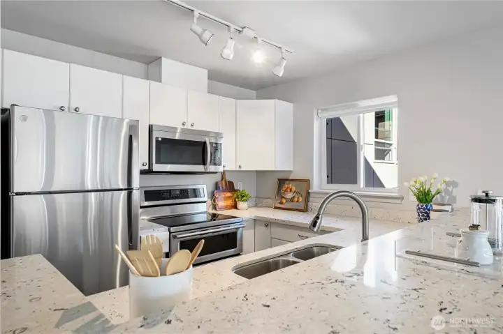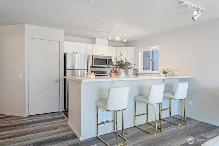 This 1-bedroom offers iconic Space Needle views from the living room and bed room. Updated crisp & clean kitchen with the new stainless appliances. Convenient open layout flows easily into dining & living area. Premier amenities include a rooftop deck w/sweeping view of the Seattle skyline, fitness center, business lounge. Two parking spaces that are included. Just a block from climate Pledge Arena and three blocks to Olympic Sculpture Park. Surround by bars, restaurants and coffees shops. No rent cap, No special assessments.