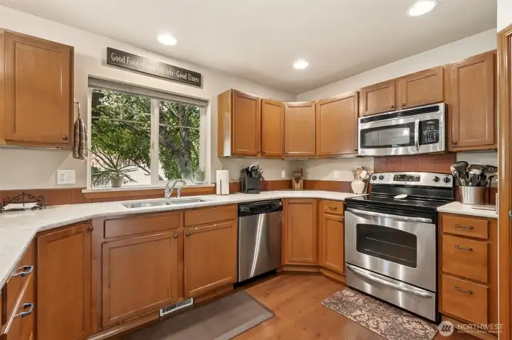 Welcome to Meridian Campus! Situated on a spacious 7,000+ sqft lot & dead-end street, this home features a great blend of comfort, space, and convenience! Enjoy 3-bedrooms, 2.5-baths, formal & informal living & dining, hardwood flooring, new carpet on the main floor, & So Much storage! -walk-in pantry, oversized coat closet, extra kitchen storage, & second-floor linen closet. Don't miss the Oversized 3-car garage—perfect for hobbies, storage, or even a boat. Fully fenced yard featuring mature landscaping, shed w/power, small playhouse, & no backyard neighbors for added privacy. Fantastic location close to golf, coffee shops, local businesses, walking trails/sidewalks, boat launch, state park, restaurants, fitness centers, JBLM, and I-5.