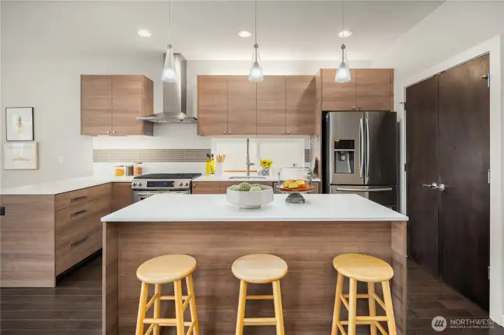 Impeccably maintained 3 BD + loft modern home by Isola Homes in the desirable City 26 community. This 3-Star Built Green residence features an open great room with floor-to-ceiling windows, gas fireplace, and hardwood floors. Gourmet kitchen boasts European-style Abodian cabinets, quartz counters, walk-in pantry, and high-efficiency stainless appliances. Spacious primary suite with spa-inspired bath, soaking tub, and walk-in closet, . Enjoy ductless mini-splits (AC/heat), HRV system, Greenguard insulation, fiber optics, fenced yard with patio, and 2-car garage. Fresh new paint and new carpet. Minutes to future light rail & top schools.