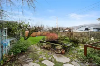 Beautifully maintained 2007, 3 bed, 1.75 bath, manufactured home offering an open, inviting layout with vaulted ceilings and abundant natural light. The kitchen is both functional and charming, featuring skylights, a pantry, and a built-in desk nook - great for work or planning. A separate utility room adds everyday convenience. The primary bedroom includes a spacious 5-piece bath for a private retreat. A detached carport offers covered parking. Step outside to a peaceful, secluded backyard oasis with a small fish pond, mature apple trees, and thriving grape vines, ideal for relaxing or hosting guests.