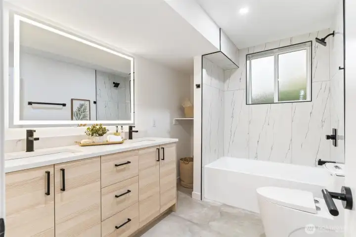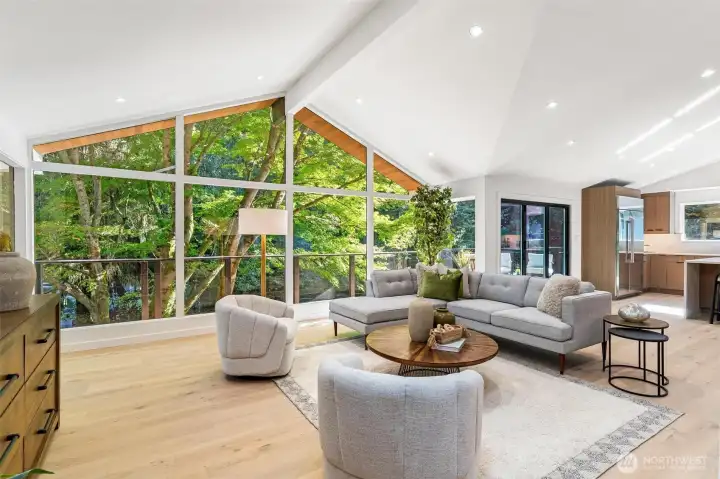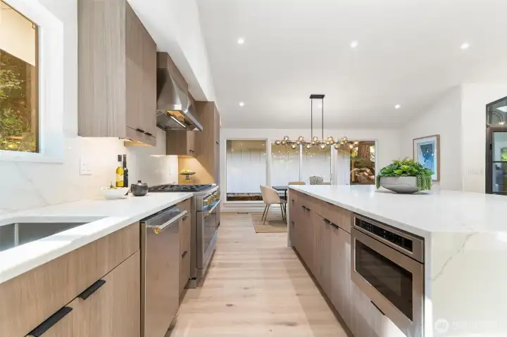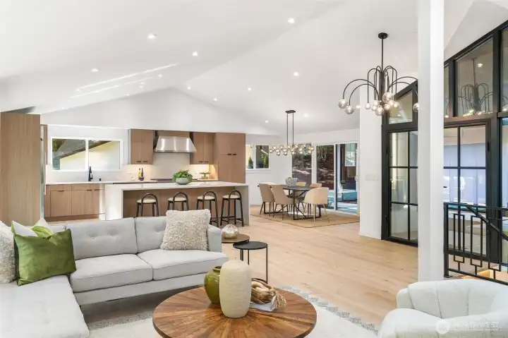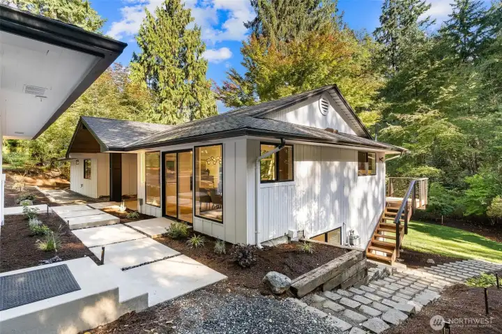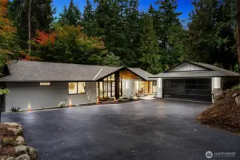 Reimagined for today's living,this stunning MCM masterpiece is ready for a new owner. Fully permitted and no expense spared, this home features many high end upgrades, from GE Pro appliances to the Belmont cabs this kitchen will bring out your Iron Chef! That Island WOW! The primary has a spa inspired bathroom and its own deck! Lower level is a entertainers dream w/wetbar and custom tiled wall. 3 stall barn & 700sf bonus area w/bath feature a unique hyperbolic paraboloid roof. Covered Car/RV/boat parking & detached garage. Located in highly sought-after BSD& minutes to Microsoft. Enjoy peace & privacy while having quick access to urban amenities With a clubhouse, pool, sport court, arena & trail system w/access to Bridle Trails Park.