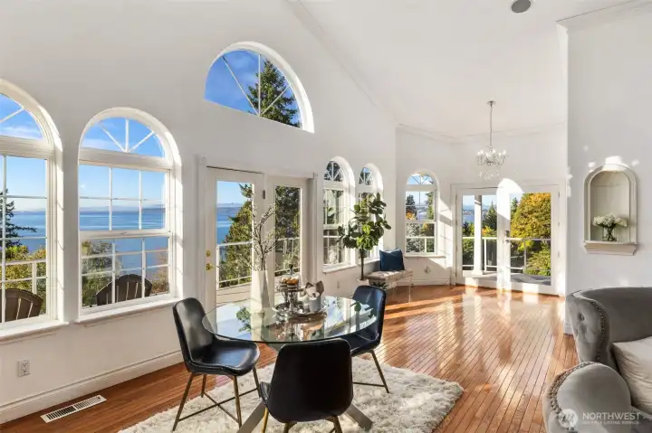 Breathe in the salt air and soak up golden sunsets over Semiahmoo Bay. This coastal retreat offers private beach access, vaulted ceilings, and walls of glass that frame endless water views. A spa-inspired primary suite with gas fireplace invites serenity, while the full lower level lives like its own residence—complete with a second kitchen and private entry—ideal for guests, multi-generational living, or a stylish income suite. Nearly three-quarters of an acre of manicured gardens and mature apple trees envelop the home in timeless beauty. Savor mornings with coffee on the deck, leisurely strolls on the shore, and evenings beside the bonfire as the sky fades to ember—just moments from Semiahmoo Resort’s golf course, marina, and spa.