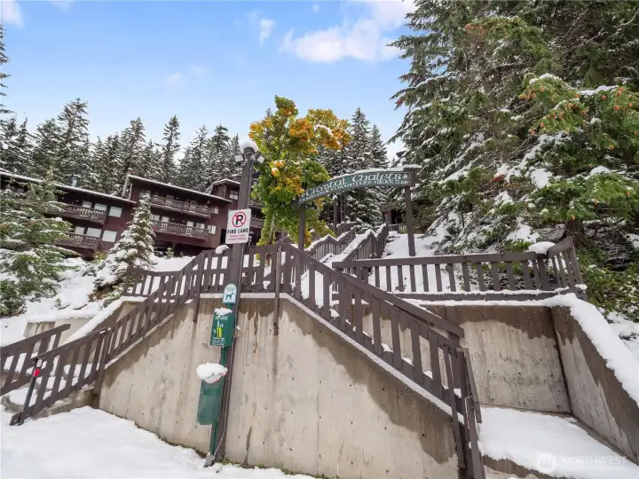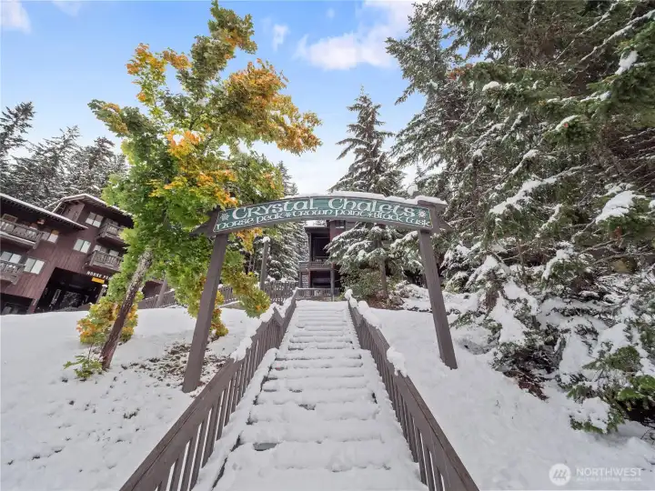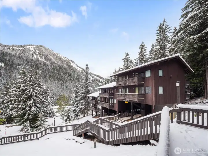 Rarely available at the base of the PNW’s premier mountain resort; Crystal Chalet is your basecamp to adventure. Epic views of the gondola from this end unit’s south-facing deck show how close you are to the lifts. The Bullion Basin trailhead is just 2.5 miles from the PCT. Providing upside for your investment is Alterra’s long-term investment strategy, demonstrated w/ new base area lodge & replacement of the REX chairlift (new for 2025). Common areas include ski tuning room, laundry, picnic area. Crystal offers non-winter events such as a music series, summer solstice, endurance trail runs, etc; this year-round destination attracts global visitors. If you’re seeking to be awakened by avalanche control work on pow days, look no further.