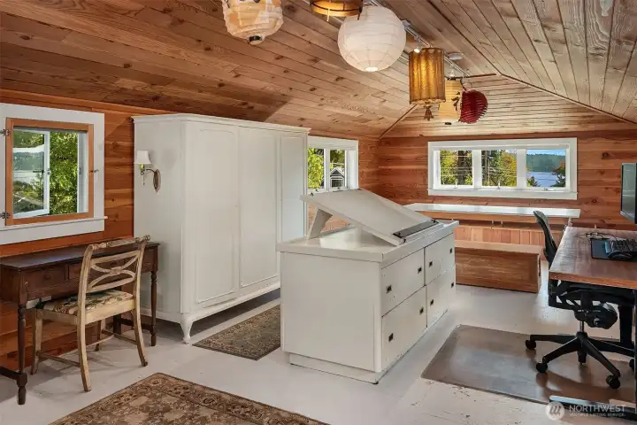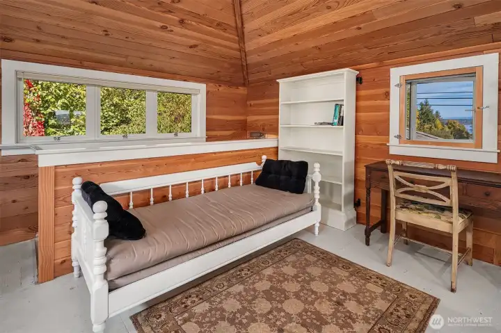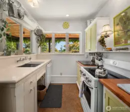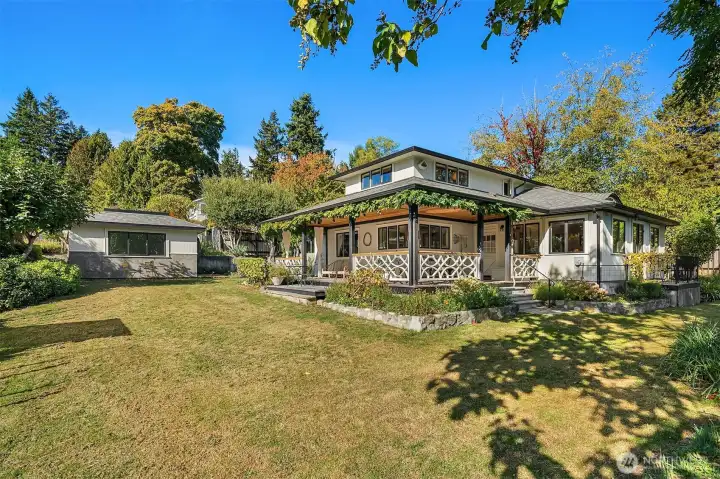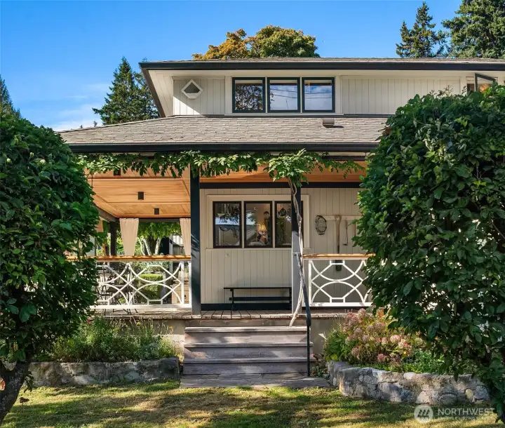 Meticulously updated, this Romantic Bungalow Cottage built in 1915 is perched just above Vashon’s favorite, KVI Beach. Every detail has been thoughtfully designed, from the Vashon-grown and milled Madrona floors to the spacious bathrooms complete with artisan tiles & radiant heat. The airy and light-filled kitchen flows effortlessly through large pass-through windows & onto the spacious covered porch, seamlessly connecting kitchen to outdoor living. The great room boasts French doors opening to a balcony to enjoy early morning. Stepping back inside, curl up by the gas fireplace & keep cozy on cooler evenings. Nestled above the dreamy office is a wonderful finished 1/2-story with picturesque views of Tramp Harbor and its surrounding area.