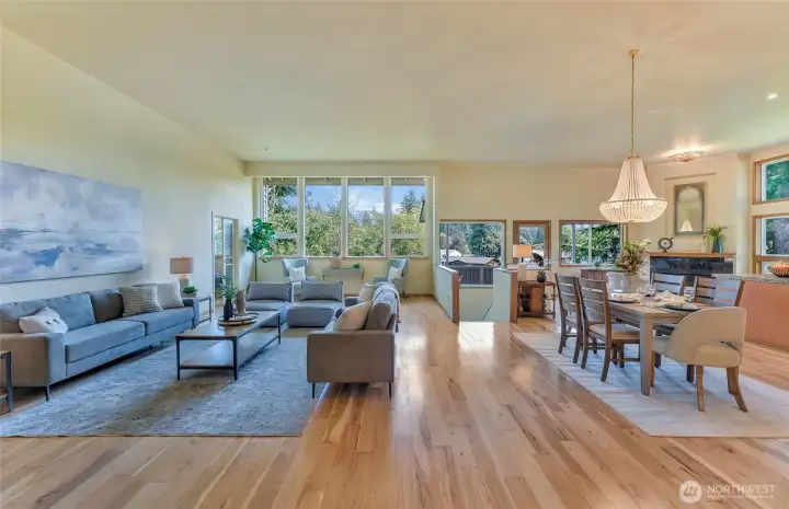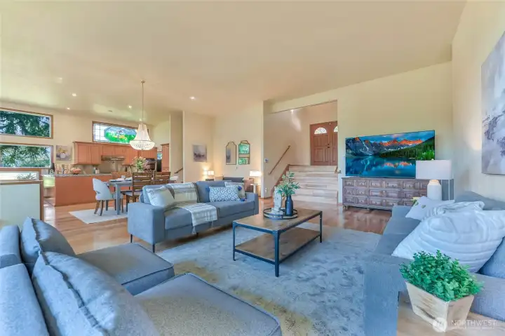 Pristine NW Architectural Designed 5-bedrooms 4-bathroom Property In Twin Lakes Most Sought After Neighborhood. Pride of ownership is found throughout. Towering Great Room with sky-high ceilings encompasses the vast living/dining & sitting rooms. Splendid tiled fireplace/banks of windows & quiet privacy. Chef super- sized, appointed kitchen, upgraded stainless steel appliances, double-oven, massive granite island. Primary suite handles your largest of furniture, luxurious 5-piece bath, personal washer/dryer utility. Upstairs 2 spacious guest rooms share full sized private bath. Lower level has Bonus Rm/wood mantled fireplace/wet bar/2 bedrooms/full bath & utility. Home sits privately off the 16th green, 2 large covered decks, huge garage!