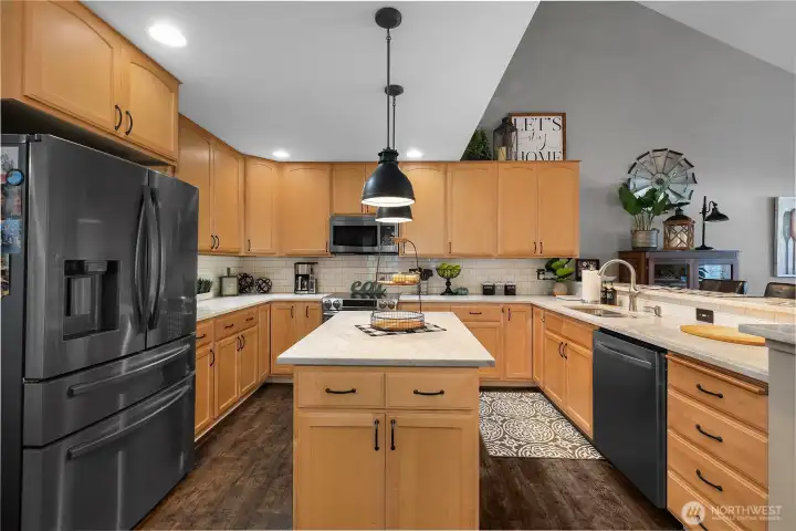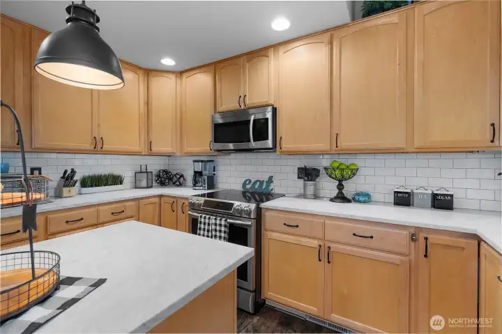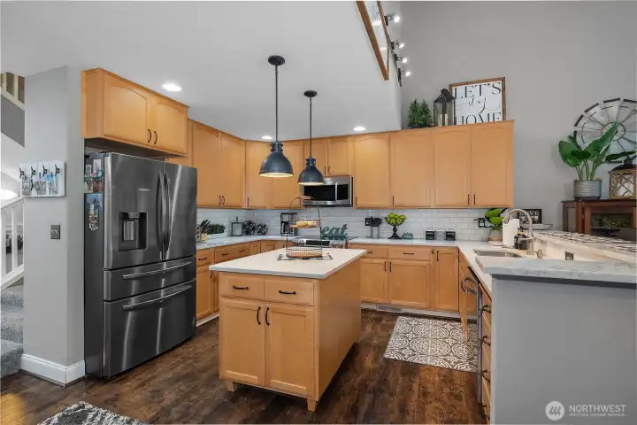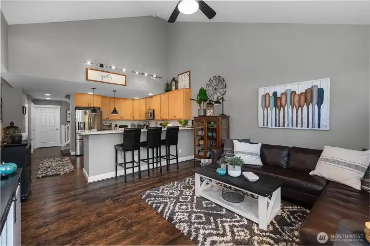 Perfectly kept & beautifully updated townhouse in ideal location! Freshly painted w/easy-care flooring & newer carpet. Huge kitchen is a highlight featuring marble countertop, newer SS appliances, & ample prep space. Open living area boasts soaring ceilings, creating a bright & airy feel. Main floor primary suite offers convenience & comfort w/access to private deck overlooking the yard. With 4 BR's, 2 full baths, & 2 half baths, there's room for everyone & the multi-level layout offers both privacy & flexibility. Downstairs room w/private entry & half bath is perfect as an office, den or 4th BR. Lrg front deck, patio, & fenced yard for pets. HOA maintains yard & exterior making living here truly easy. Immaculate, cozy & move-in ready!