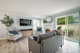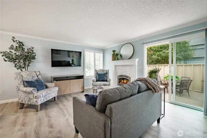 Recently updated end-unit in desirable Northridge Estates! Light-filled 2BR + den floor plan features generous great room opening to private, gated patio. Remodeled kitchen w/ newer appliances & plantation shutters makes this truly turn-key. Attached 1-car garage offers direct, secure home entry. Efficient radiant floor heat throughout & newer gas fireplace keep the main level cozy & affordable. Upstairs you’ll find two large bedrooms, great storage, & private deck. HOA covers water, sewer, garbage, internet/cable, landscaping & more, plus access to fantastic community amenities: clubhouse, heated indoor pool, sauna & sport court. Convenient Mount Vernon location in a quiet, park-like setting, plus true affordability in today’s market.