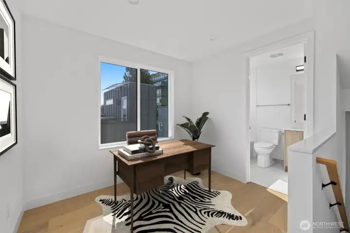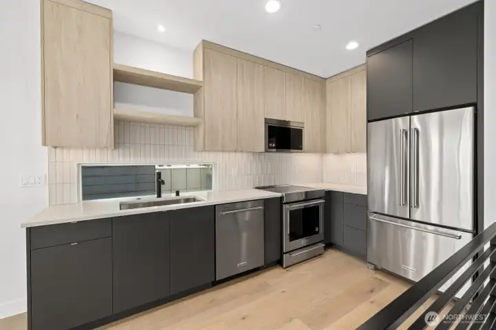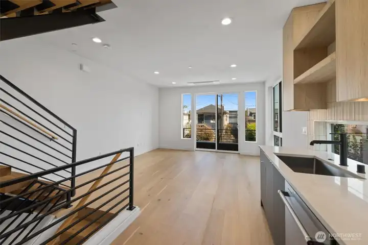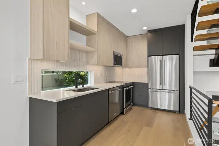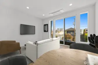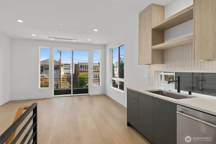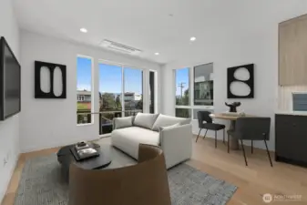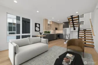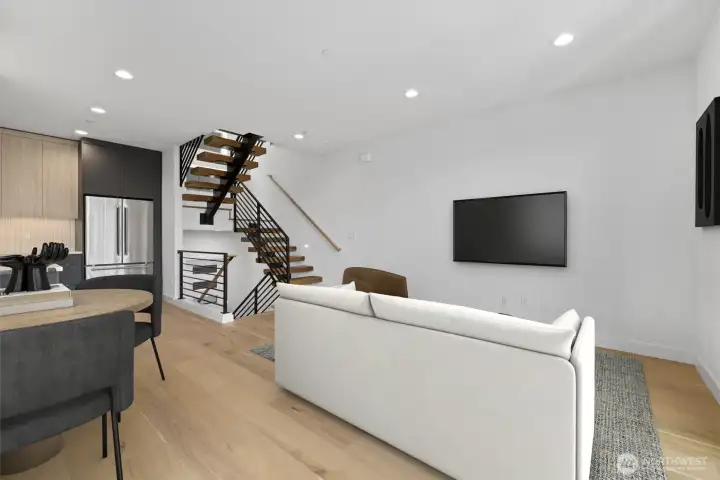 Live where Seattle comes alive—just minutes from SLU, lakeside trails & Queen Anne cafés. From your private rooftop deck, soak up Lake Union views, sparkling city lights & host summer nights under the stars. Inside, three bright bedrooms & an open, social floor plan make everyday living feel connected. The sleek gourmet kitchen is ready for dinner parties, while the floating open-tread staircase doubles as a design statement. Need space to hustle or sweat? The bonus flex room is perfect for your WFH setup or home gym. Zoned heating + A/C keep it cool in summer and cozy in winter, HRV provides healthy air. Covered EV-ready parking, washer+dryer included, engineered hardwoods, and plenty of storage round out the perks. Urban living, elevated.