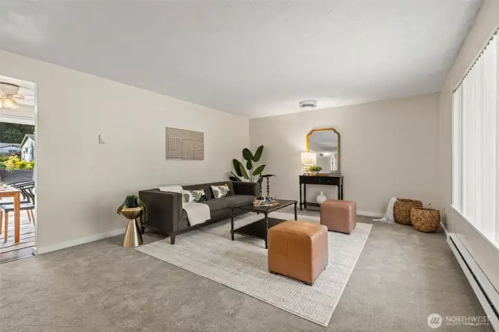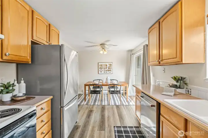 Clean, cozy, & affordable! Sweet rambler tucked away on a quiet little dead-end street in Puyallup’s South Hill. Nice and peaceful, but still just a few minutes to Meridian & Hwy 512. Fresh paint outside & sturdy vinyl windows. Nice level 10,425 sq ft lot that’s fully fenced and ready for pets or play. Inside you’ll find a comfy layout with a big picture window in the living room that lets the sunshine pour in. Three bedrooms total, including a primary suite with its own ¾ bath. The kitchen’s a handy galley style with plenty of cabinets and a cozy eating area. Attached one-car garage with good headroom for shelving plus attic storage. All appliances stay! And the cherry on top—a brand new septic system going in before closing. Come see!