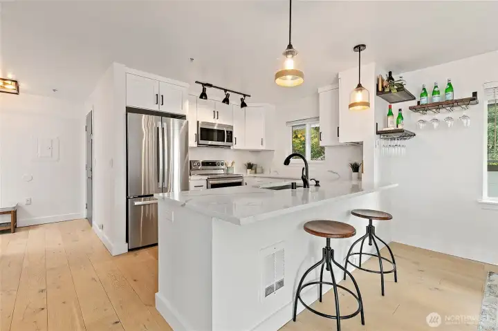 Rarely available 3-bedroom condo with breathtaking west-facing views of the Puget Sound, Elliott Bay, & Olympic Mountains from every room! Meticulously maintained, top-floor, corner unit on the Penthouse level, completely turnkey & ready for its new owner! Over $30k in recent updates/upgrades including AC & Quartz Countertops! Dream layout is perfect for entertaining, featuring indoor/outdoor connectivity. A spacious primary suite is separated from main living areas, providing privacy. 2 full-sized extra bedrooms & full bath are ideal for guests or dedicated WFH spaces. 2 full-sized parking stalls in a secure garage. Seller Procured Inspection Available! Conveniently located on the RapidRide D Line to Belltown/Downtown or up to Ballard.