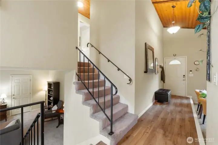 Fantastically updated home in established Kent neighborhood with mature trees is convenient to Gary Grant Park, Soos Creek Trail, and multiple schools. This 4-bed, 2.5-bath home features a fully-equipped outbuilding with water and heat — ideal for studio, office, or guest suite. Absolutely gorgeous kitchen remodel showcases white subway tile, custom cabinetry, new stainless appliances, butcher-block counters, and abundant breakfast bar with separate dining. Main level interior features soaring vaulted tongue-n-groove wood ceilings. Private yard with new cedar fence is perfect for outdoor entertaining. Updates to the home include vinyl plank flooring, tiled ensuite bath, new windows, water heater, and carport. Truly turnkey & move-in ready!!