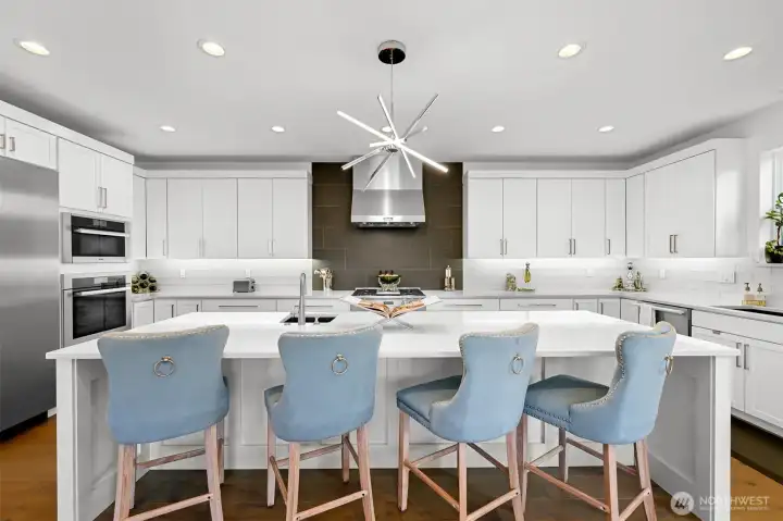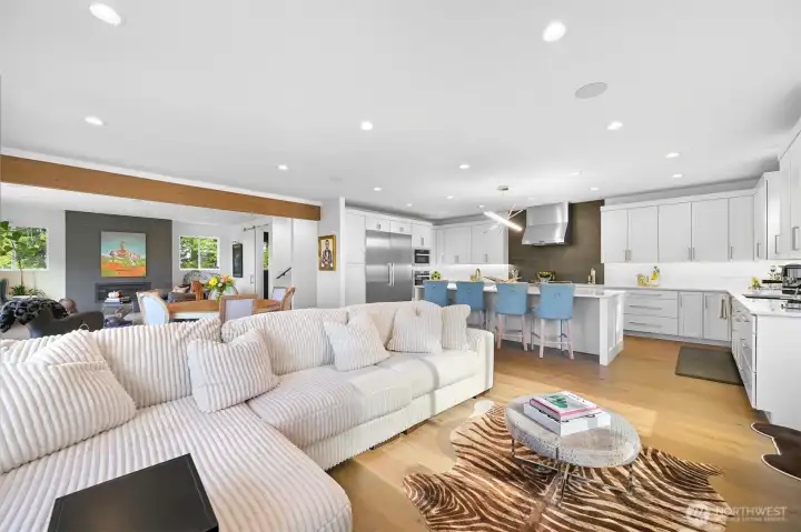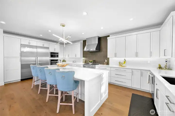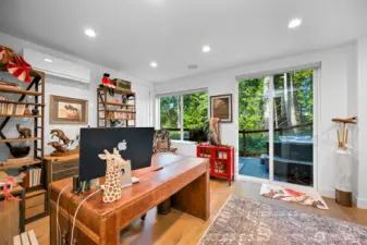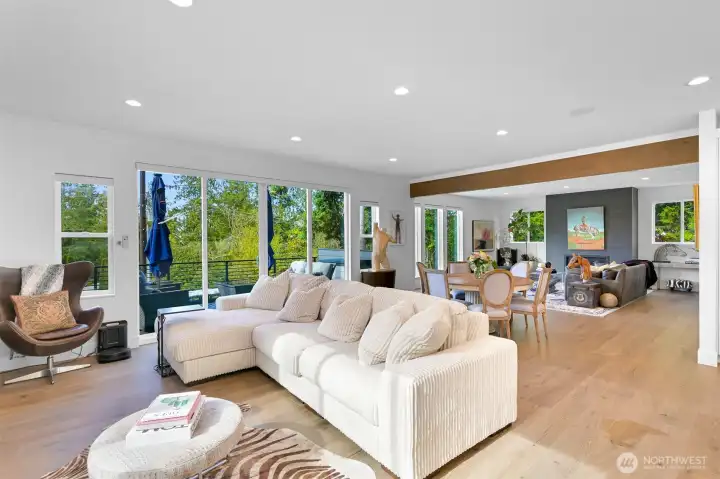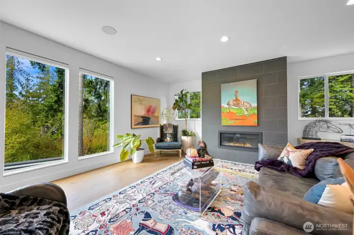 Welcome to a beautiful custom-built home in Bellingham's Samish neighborhood! PNW contemporary architecture on almost 1/2 acre, this home features 5 bedrooms + office, 4 baths and a gorgeous west-facing deck. The kitchen includes a complete Miele appliance package and upgraded cabinetry. The main floor bedroom has its own ensuite bath. Other custom elements include power blinds, zoned heating and air conditioning, and Sonos sound through home & deck. 4-car tandem garage is heated and insulated, with Swistrax flooring tiles & EV charger. Set among protected greenspace to the north and east with peekaboo views over Bellingham, and close to Happy Valley, Sehome High, WWU, and all the Bellingham offers!