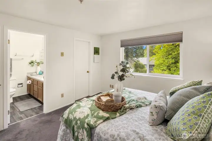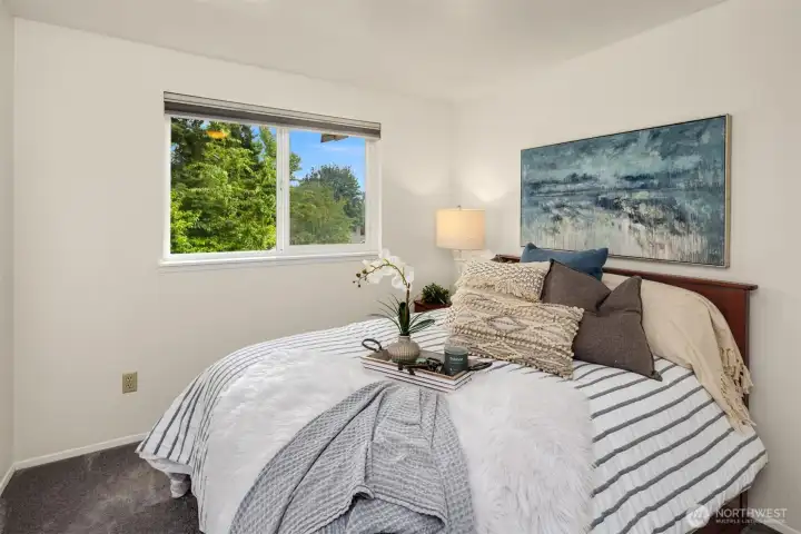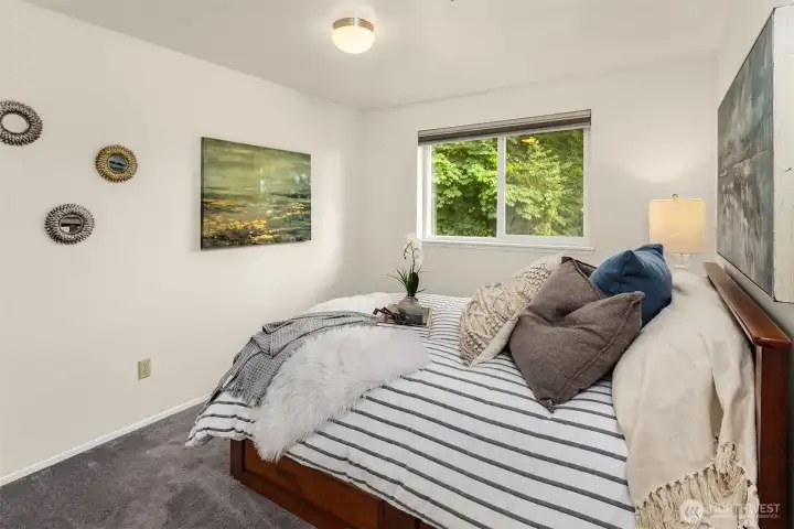 Welcome home! Step into a bright and open living space featuring a cozy wood-burning fireplace and access to a private deckâperfect for relaxing or entertaining. The kitchen offers a convenient breakfast bar, ample cabinet space, and a generous pantry. Upstairs, you'll find a spacious primary suite with a walk-in closet and full en-suite bath. Two additional bedrooms and another full bath with beautiful natural light from multiple skylights. Enjoy the convenience of an attached 1-car garage plus an additional parking spot. Brand new Water Heater. The well-managed HOA allows two pets with no weight restrictions. Shopping, food and entertainment close by. Easy access to I-5, Bus routes and both Lynnwood and MLT light rail stations.