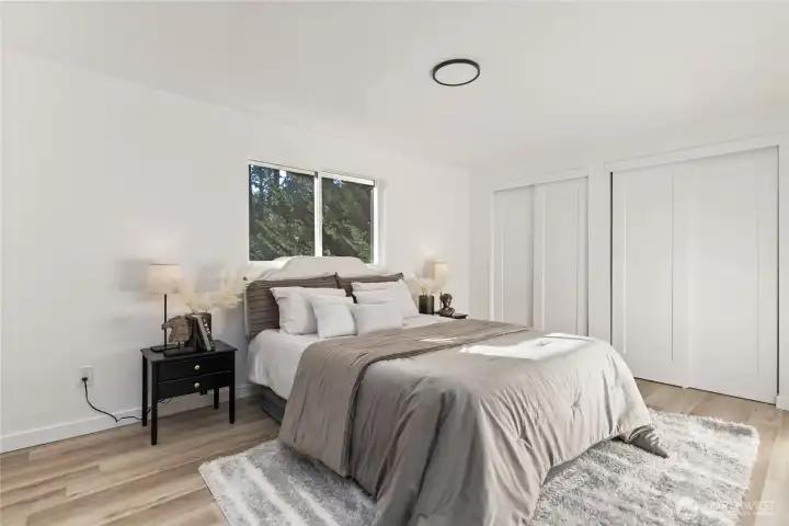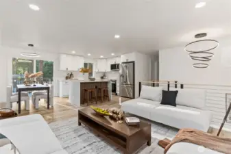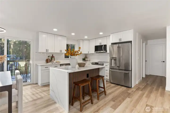 Stunning remodeled split-entry home with newer roof and sleek glass garage doors, nestled on a fully fenced lot backing to a tranquil greenbelt. Enjoy exclusive access to Jenks Park with private beach, tennis courts, and boat launch—perfect for outdoor recreation. The upper level features 2 bedrooms, an office, and a beautifully updated kitchen with soft-close cabinets, stainless steel appliances, and a waterfall island, complemented by a mini-split unit in the living room for year-round comfort. Downstairs boasts a spacious primary suite with walk-in closet, ensuite bath, and a cozy family room. Combining modern upgrades, serene outdoor spaces, and coveted private park privileges, this home is truly a must-see!Come See TODAY!
