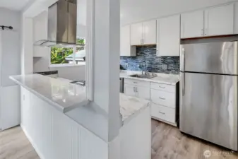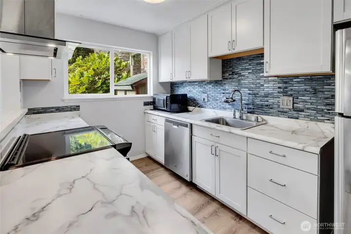 Welcome to Newport Hills! This stylish condo offers open-concept living, a sun-drenched private patio, and all the space you need in a vibrant, convenient location. Whether you're entertaining guests or enjoying a quiet night in, the cozy electric fireplace sets the perfect mood and heats it all. The bright, light-filled kitchen makes entertaining a breeze. Laminate h/w floors are easy to clean. Laundry and powder room off the kitchen with extra pantry space. Two spacious upstairs bedrooms and an updated full bath make it live like a home. No rental cap: perfect investment or move right in to enjoy the top rated Bellevue School district and amenities like the outdoor pool, sport court and clubhouse. Inspected for your confidence!