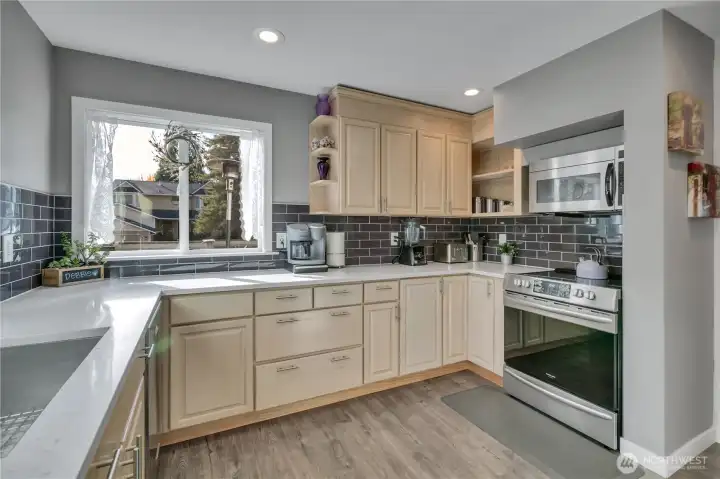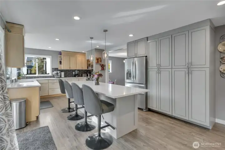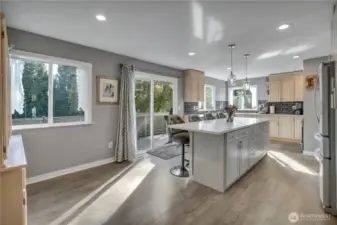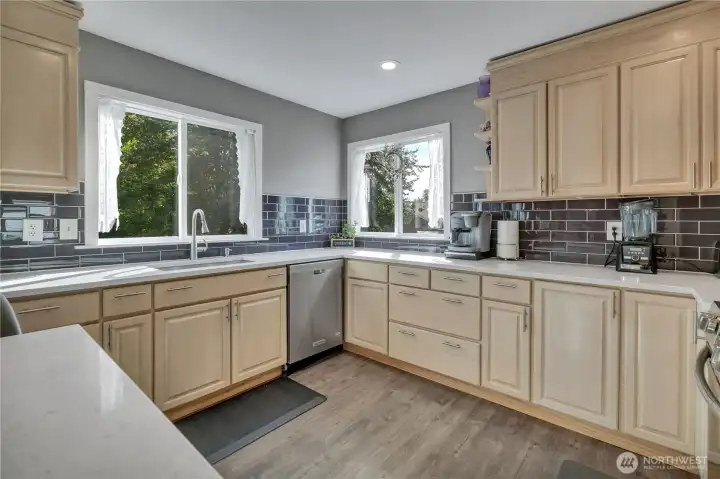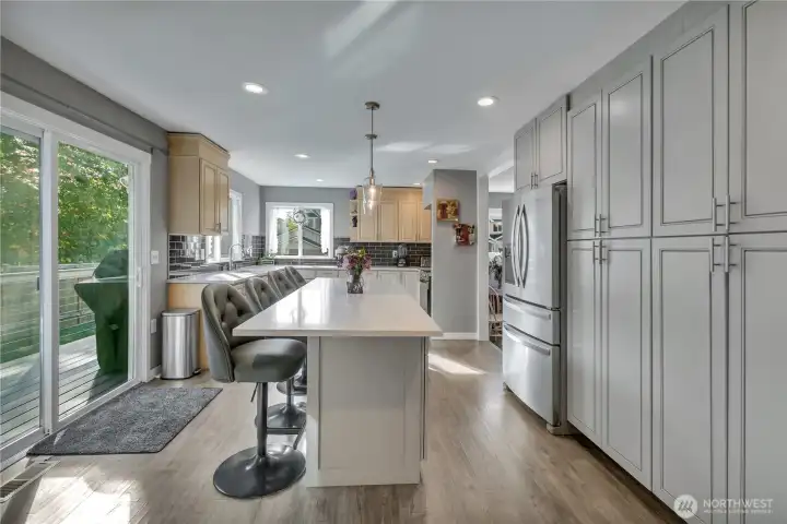 Well-maintained home on a large corner lot. The updated kitchen features an oversized island with quartz countertops and opens to the dining area. Step out to the new wraparound deck overlooking the fully fenced backyard with garden space and shed. The primary bedroom upstairs includes an ensuite, with three additional bedrooms on the upper level. Two-car garage offers extra storage and access to a dog run or extra outdoor storage. Conveniently located near 405, 167, and the Sounder light rail for an easy commute. Make this your next home!