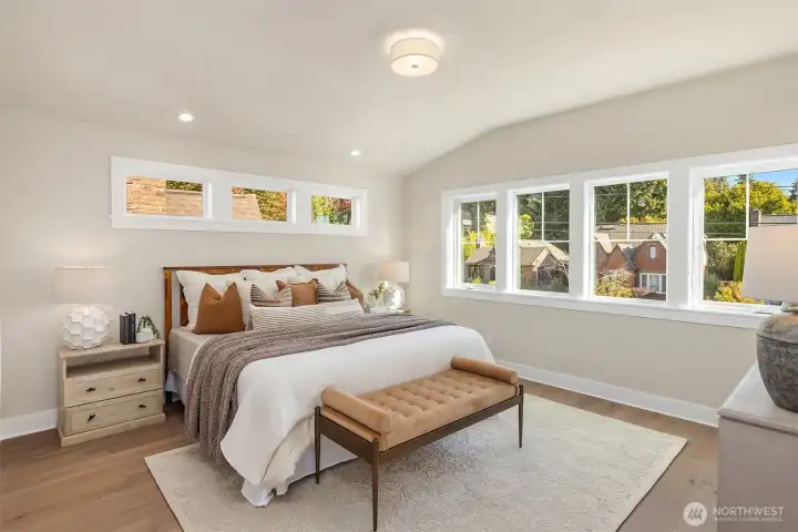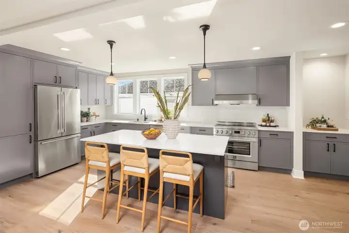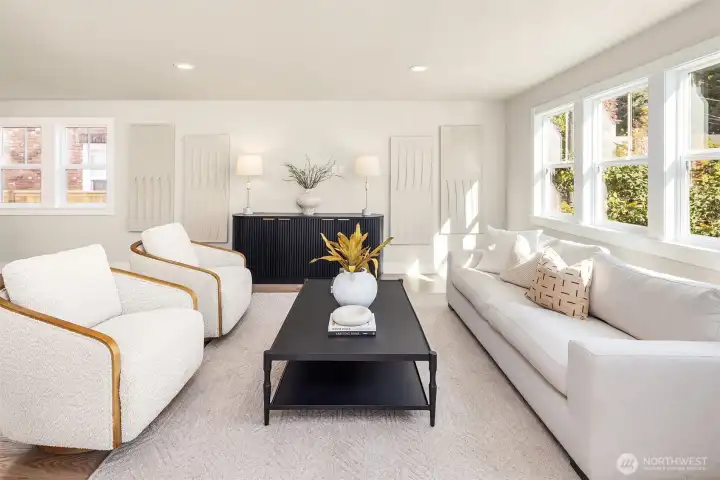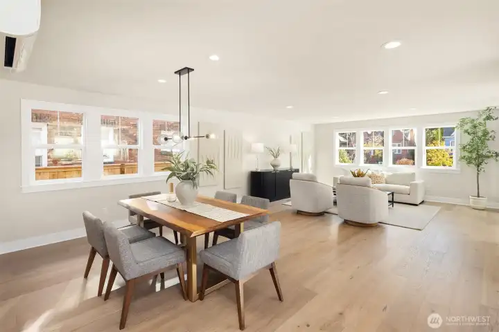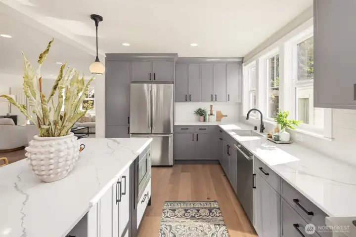 Just blocks north of Green Lake, this beautifully refreshed five-bedroom home perfectly blends timeless charm with modern comfort. The bright, open main level features a stunning open concept layout with spacious kitchen with walk-in pantry. Main floor also host ideal home office or guest room, and convenient powder bath for entertaining. Upstairs, discover three bedrooms including a serene primary suite with a stunning custom bath. The lower level offers a versatile bonus room, additional bedroom, and full bath. Enjoy a fully fenced sizable backyard, one-car garage, and inviting front yard with great curb appeal—all near Green Lake, Woodland Park, and top local dining.