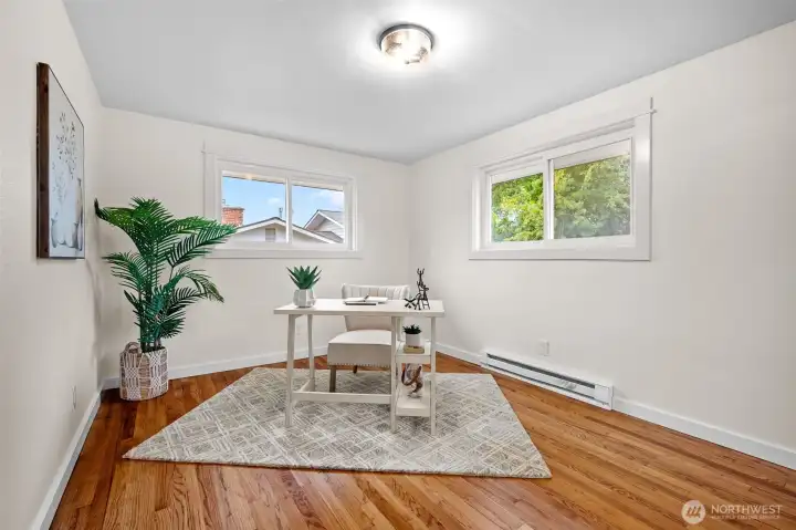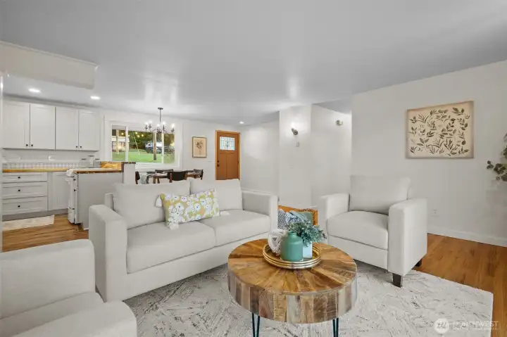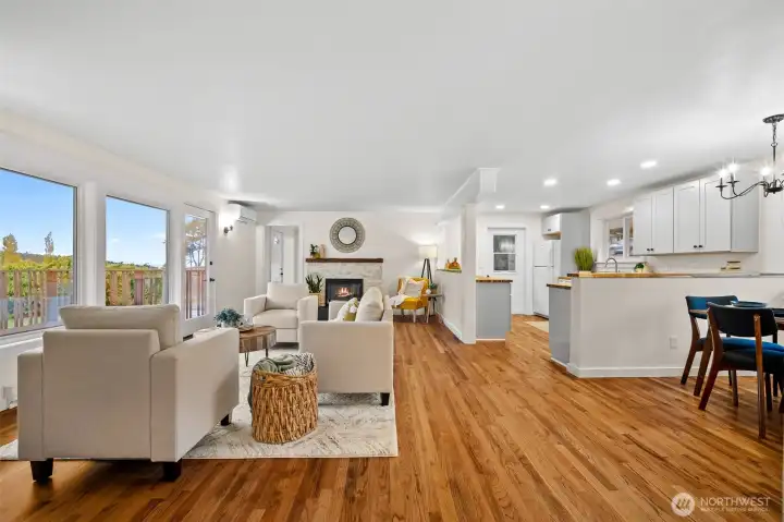Move in ready updated 1,338 sq.ft 4 bedrooms, 2 full bathrooms beautiful home. Hardwood floors have been recently refinished. New kitchen cabinets with room for extra storage, new countertops, with elegant farm sink, all appliances included. Kitchen dining area with easy access to backyard desk. Enjoy the bright living room and cozy fireplace ready for entertainment or gatherings. Primary suite offers large walking closet updated bathroom with dual sinks. New LED lighting energy savings. New exterior and interior paint. Mini split system for heating/AC. Available RV parking. Fully fenced yard with large deck. Metal roof. No HOA.