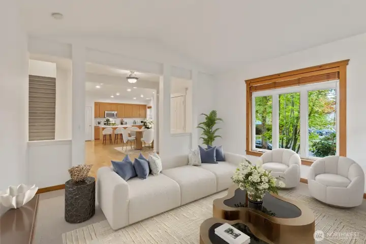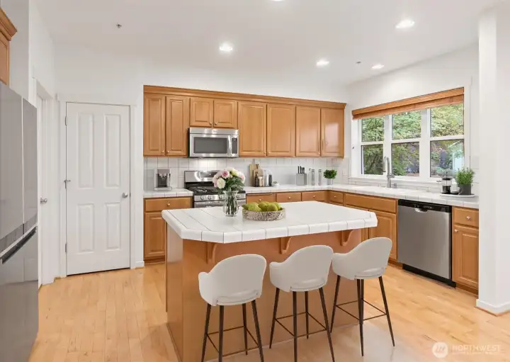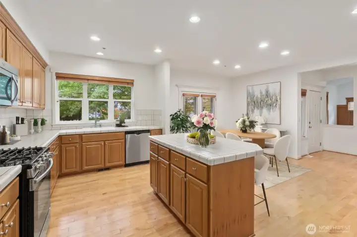Lovely townhome nestled in the heart of Snoqualmie Ridge. End-unit with LOTS of windows & vaulted ceilings lives like a single-family home. Perfect floorplan, featuring a main floor primary suite, wide open living/entertaining spaces, and a large kitchen with abundant storage & prep space. The 2nd bedroom is tucked upstairs with its own bath, and the spacious loft is a great flex space- could be a media room, office, or easy conversion to a 3rd bedroom. Located on an idyllic street with beautiful mature trees, blocks to shopping, dining, parks & amenities. Sip coffee and watch the world go by on the charming front porch, or retreat to your private yard for a peaceful break. Absolutely turn-key, with brand new paint & carpet. Welcome Home.