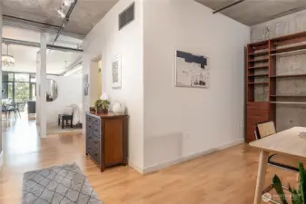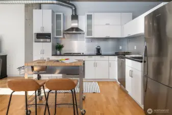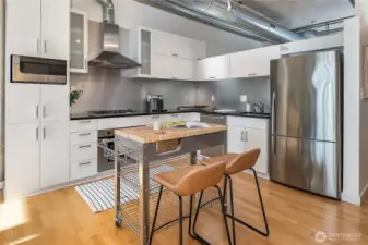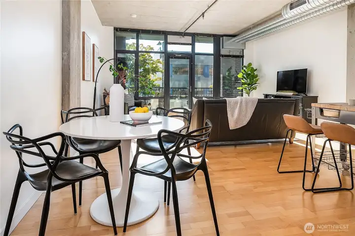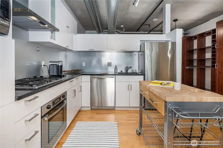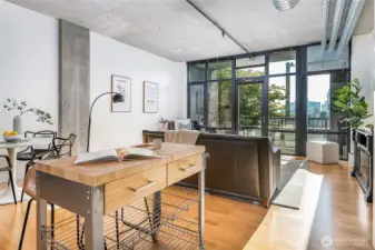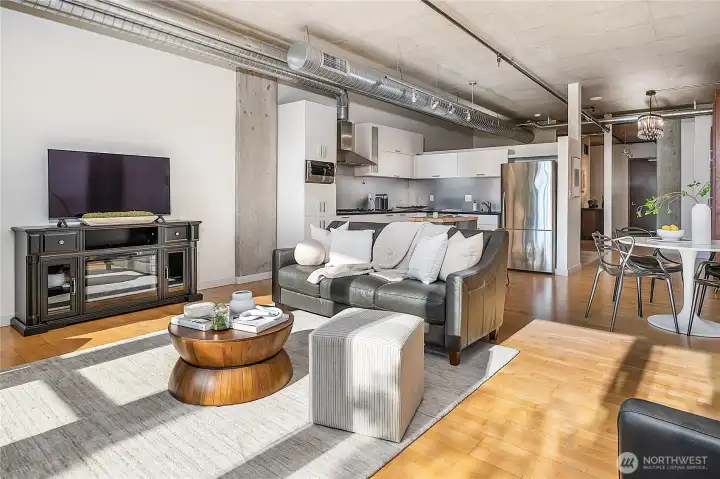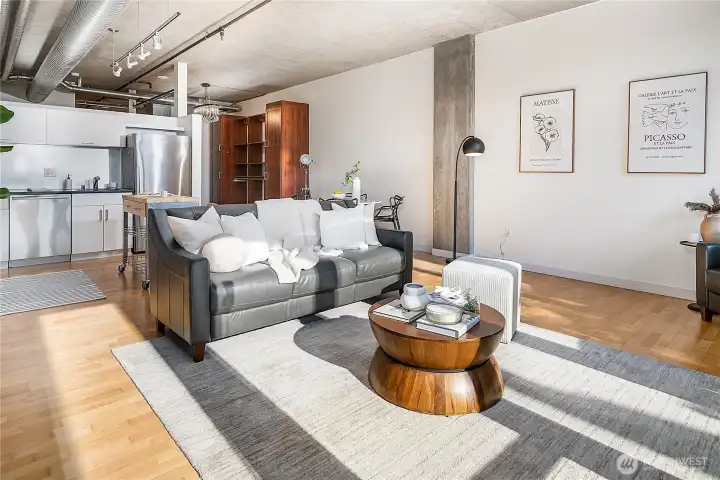 Experience the epitome of city living in this near 1000SF 1BD+Den at Mosler Lofts. This home features 10'ceilings, exposed concrete, & West-facing floor-to-ceiling windows opening to a private terrace oasis. The sleek kitchen boasts quartz counters, SS appliances w/gas stv, & great strg. The BD can remain open for intended loft-style vibes or enclosed as preferred, while the Den is ideal for a home office. EV-ready parking, motorcycle parking, private storage, & amenities incl- a rooftop deck w/Space Needle & sound views, 24-hr concierge, fitness & guest suite. Steps from the Olympic Sculpture Park, Climate Pledge & Pike Place, this home offers the best of Belltown, Lower Queen Anne & SLU living w/quick access to ALL major transit routes.