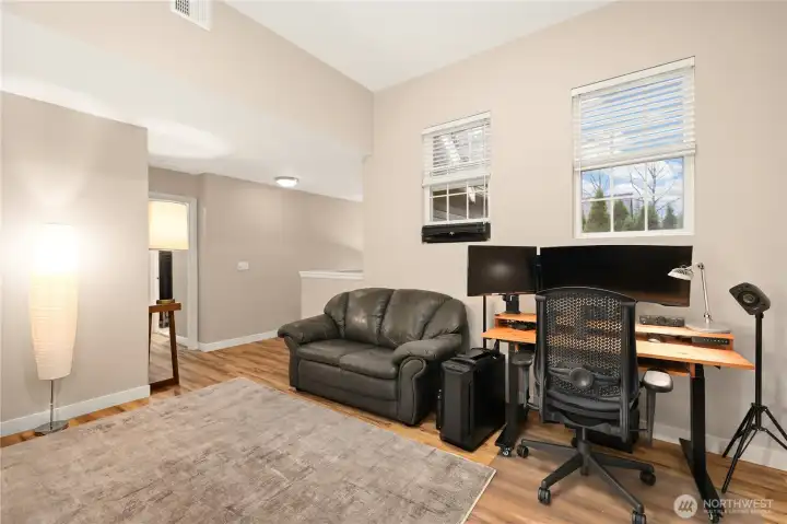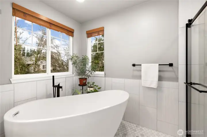 Conveniently located and move-in ready townhome in desirable Cheswick Lane. Thoughtfully refreshed with new interior paint, LVP flooring, LG washer/dryer, GE Profile kitchen appliances, solid wood trim, & central A/C. Main level offers an open floor plan with spacious living & dining areas, a well-appointed kitchen, bedroom, & updated full bath. Upstairs, a versatile loft is ideal for office, media, or hobbies. The primary suite features a fully renovated bath with vessel tub, heated floors, new vanity, & walk-in closet. Low dues cover exterior, roof, & common areas; roofs replaced in 2022. Includes newer tankless water heater, 2-car garage, USB ports & smart-wire ready. Prime location near shopping, services, & top Lake Washington schools.
