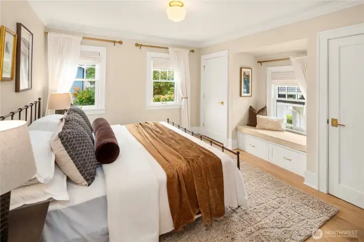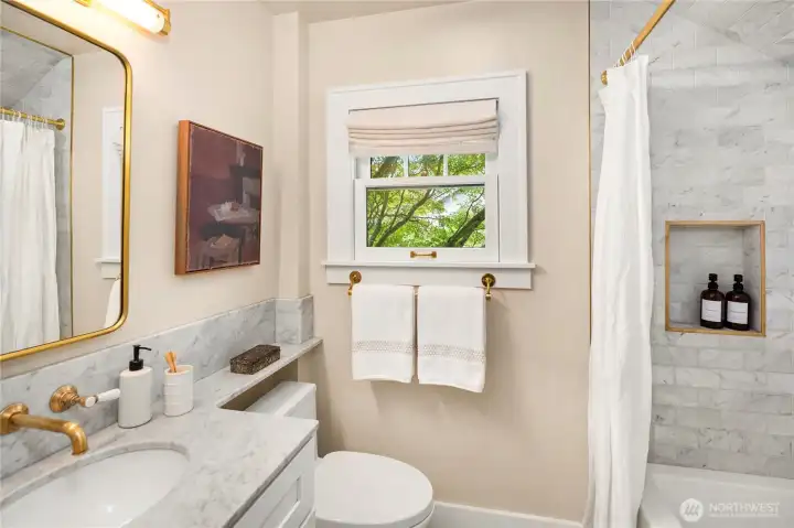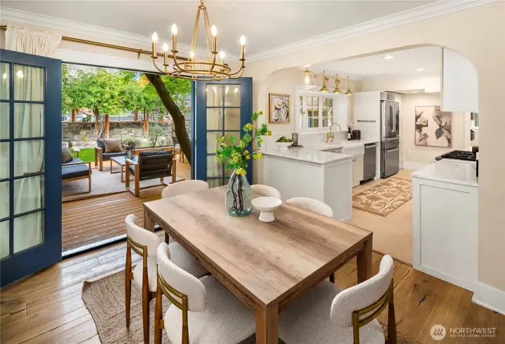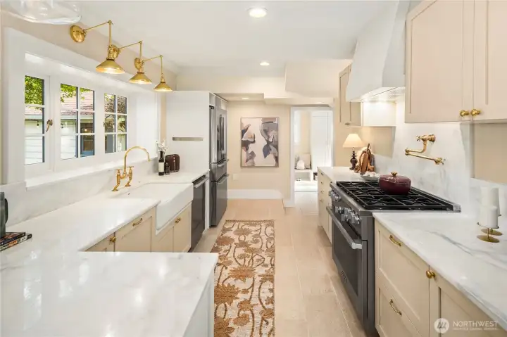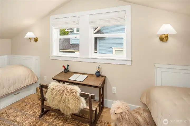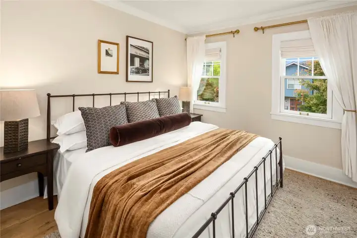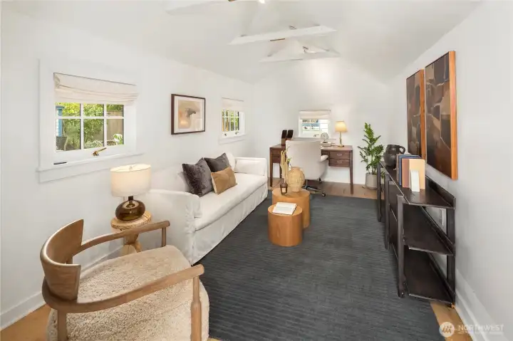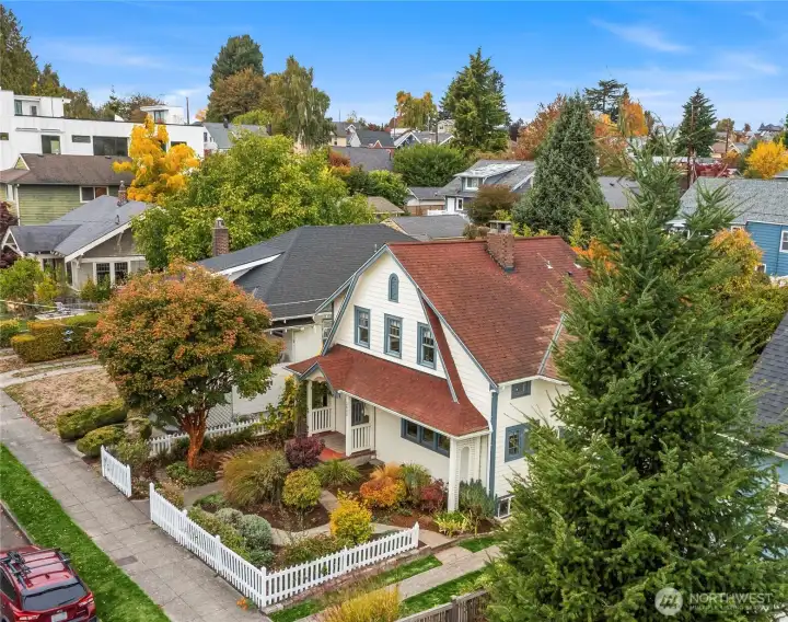 Stunning Sunset Hill Dutch Colonial exudes classic elegance w/ thoughtfully curated high-end finishes. Reimagined in 2020 w/ major renovations: plumbing, electrical, mini-splits (heat & A/C), mechanicals, windows, & earthquake retrofitting. New hardwood & sandstone tile flrs. Calacatta marble throughout kitchen, bathrooms, & fireplace name just a few aesthetic updates. Built-in window seats & shelving add to the captivating charm. Detached garage converted to live/work space w/ heat. Finished basement with separate living space. Seamless flow of main living area extends out to the cedar deck w/ built-in planter boxes & mature garden. Highly rated schools. Close to parks & 1 block to Green Grocer, Molly's Bottle Shop, Baker's & Picolinos.