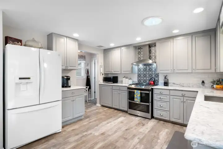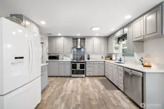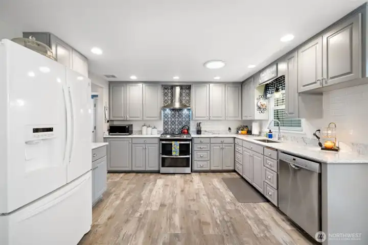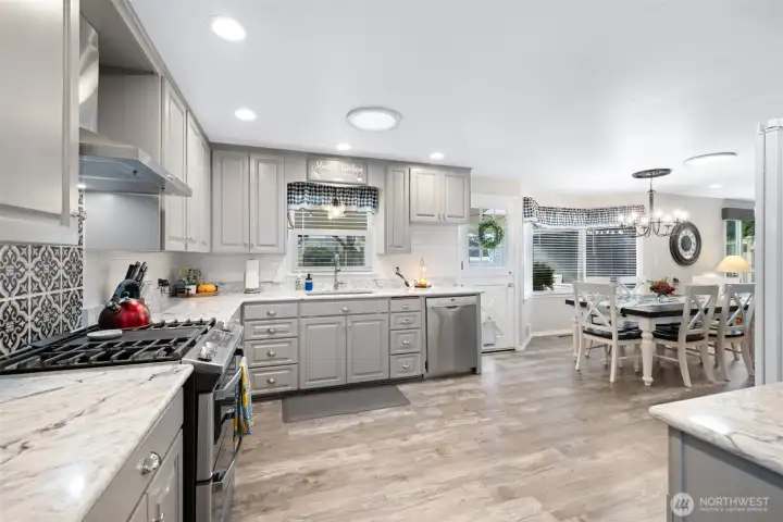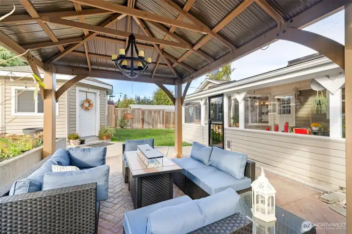 This remodeled 4BR/2BA open concept home includes a sunroom, granite countertops and a propane double oven. Huge primary suite offers sitting area, walk-in closet, jetted tub & water/mountain views. Living room is open to the dining room and kitchen which is perfect for entertaining! Attached 792 sq ft garage plus a separate shop building, enclosed detached carport & RV/trailer/boat parking. Large, fenced backyard features stamped concrete patio under a gazebo & a pine-lined gazebo outbuilding & greenhouse. Lots of space for all your toys, exercise room, office or? This home blends comfort, versatility & outdoor living! Don't miss the opportunity to own this home in a great area, close to schools, library and the Olympic National Park.