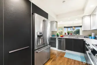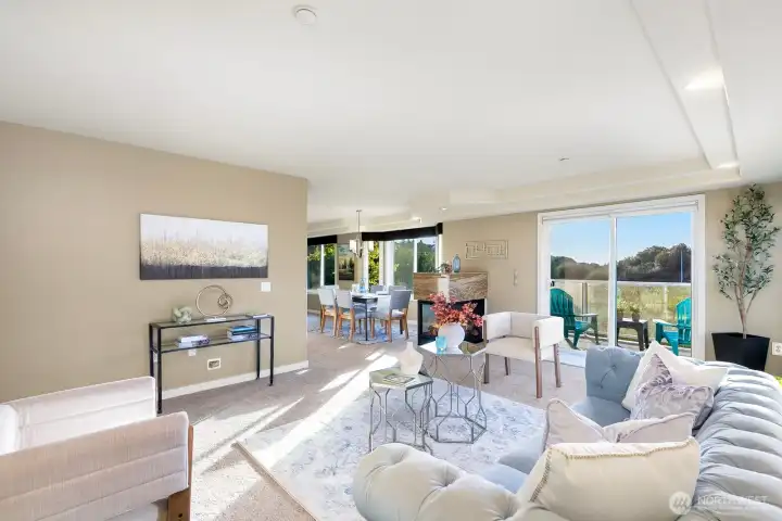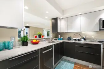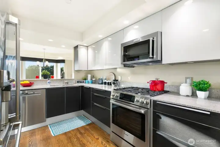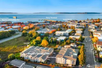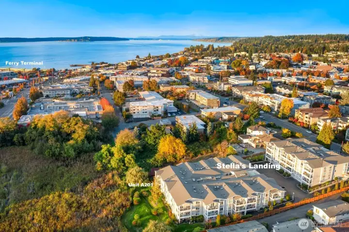 HIGHLY DESIRABLE Stella’s Landing! SPACIOUS 1682 sqft BEAUTIFULLY updated 1-level condo steps from downtown Edmonds dining, shops, arts, waterfront, and ferry. Relaxing panoramic mountain views from the private deck overlooking the serene bird sanctuary. Features include: Quartz counters, Pedini Italian cabinets, gorgeous stainless steel appliances (refrigerator with built-in Kuerig!), wine fridge, and a 3-way gas fireplace. SUMPTUOUS primary suite with 5-piece bath & walk-in closet & additional wardrobes. No stairs! Elevator to the 2 secure garage parking spaces & storage. Pet-friendly (up to 20 lbs), abundant guest parking, community room with kitchen, sauna, fitness, and BBQ area. Well-managed HOA and delightful community. Welcome home!