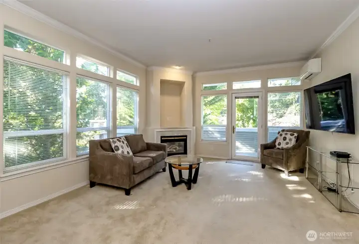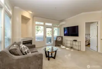 Dont miss this corner unit with abundant natural light in the beautiful Barrington Condo's. Open kitchen with upgraded pine cabinetry, stainless appliances, and plenty of counter space. Open concept with bar for eating meals. Two large bedrooms with adjoining full bathrooms. Second bedroom has built in murphy bed for added space. Nice sized balcony with plenty of room for gardening and grilling! Secure underground parking with two parking spaces and a storage unit. Elevator eliminates the need for stairs to your unit. Mini split heating and cooling unit keeps the temperature exactly where you like. Gas fireplace adds warmth and ambiance. Stack washer and dryer in unit. Shopping, dining, and recreation are all close by.