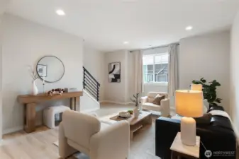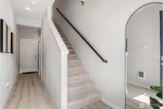 This beautiful home offers a perfect blend of comfort and style. Featuring 3 bedrooms, 2.5 bathrooms. The lower level includes a convenient entryway and a tandem 2-car garage. On the main floor, you’ll find a modern kitchen equipped with stainless steel appliances, elegant quartz countertops, and direct access to your private deck—ideal for relaxing or entertaining. The open-concept layout seamlessly connects the living and dining areas, along with a stylish half bath for guests. Upstairs, enjoy a generous primary suite with en-suite bath, plus two additional bedrooms and a second full bathroom. Located just steps from the scenic Pond and miles of walking trails, with access to top-rated schools and only minutes from everything you need.