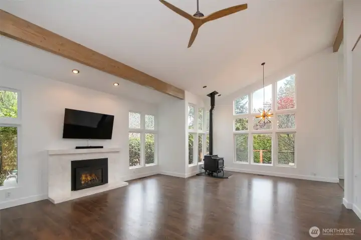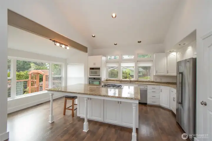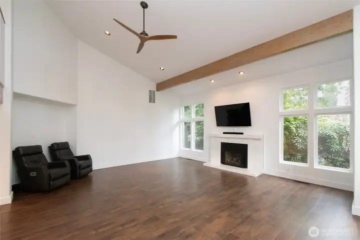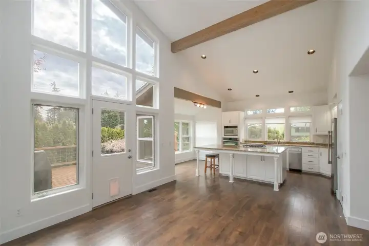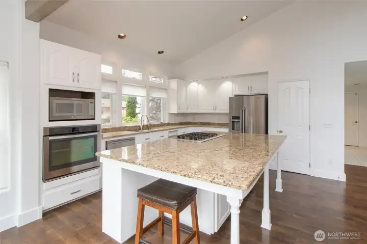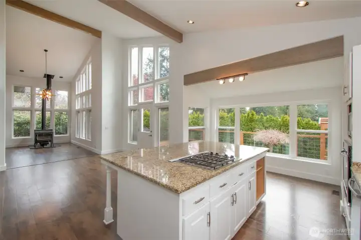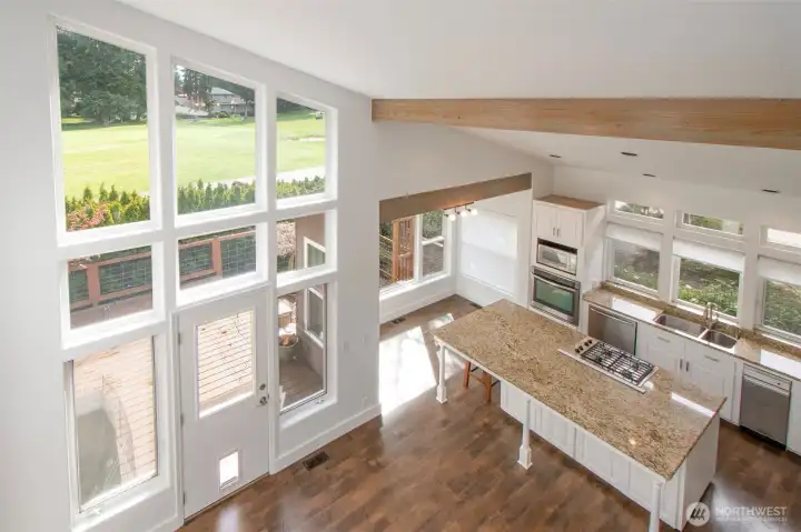 Meticulously remodeled and maintained. As soon as you step inside, you will notice how warm, welcoming, and luxurious this home feels. From the exquisite marbled entryway, to the huge 26' high vaulted great room with warm wood stove and huge floor to ceiling windows. Enjoy the open concept chef's kitchen with it's expansive 63"x98" granite center island. New engineered laminate flooring throughout, new H2O heater, new interior paint and exterior trim. Low maintenance fenced yard that feels immensely private. Ideally located overlooking the 4th & 8th green, within walking distance to the pool and clubhouse. This property offers multiple efficient storage areas, a large loft, an oversized 3 car garage, bonus rooms for crafts, hobbies, or office space.