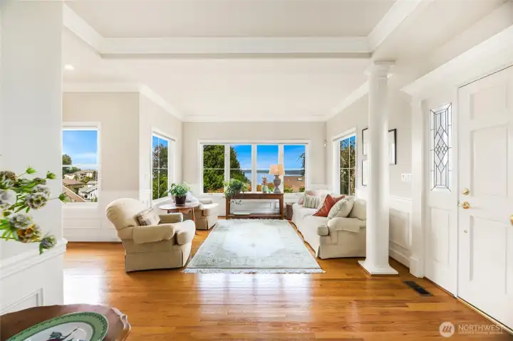 Rare offering w/in an intimate, gated enclave of just 14 luxury homes. One-owner residence rests on a private, elevated half-acre lot showcasing sweeping Puget Sound, territorial, & lush greenbelt views—captured through expansive picture windows that bathe the interiors in natural light. Open, entertaining floor plan flows seamlessly into a kitchen designed to inspire your inner chef, w/copious storage & prep spaces. Experience timeless craftsmanship & elegant finished carpentry rarely found today. Serene primary suite offers a private deck, view sitting area, & spa-like bath. Versatile lower-level suits guests, movie night, home office, & multi-gen living. Fresh carpet, 3-car tandem garage, & walkable access to historic Redondo Beach.