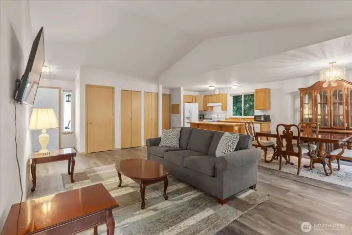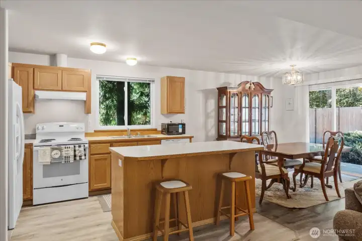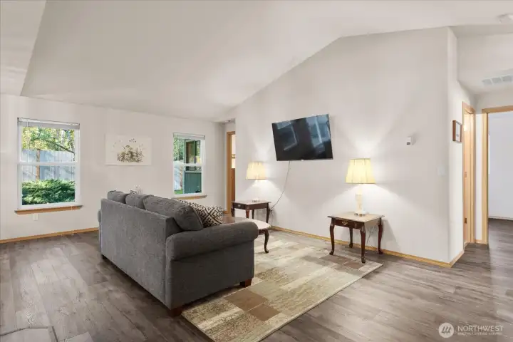 Welcome to this secluded South Everett rambler situated at the end of a long, private driveway. This tastefully updated 3-bedroom, 2-bathroom home features a newer composition roof, new interior and exterior paint and LVP flooring throughout! Open concept design with generous living room, eat-in kitchen with island and separate dining area. Sliding door leads out to large, level fully fenced yard surrounded by protected greenbelt, perfect for relaxing or entertaining! Primary ensuite with full bathroom and walk-in closet. Attached 2-car garage with plenty of driveway parking. Desirable Mukilteo School District and close proximity to Paine Field and Boeing for easy commuting!