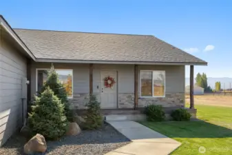 This inviting 3 bed, 2 bath home offers 2,064 sq ft of open living space with a vaulted great room and cozy wood stove. The kitchen features updated cabinets, granite counters, stainless appliances, and a HUGE walk-in pantry. A flexible den or office adds versatility. The spacious primary suite includes a tiled shower, soaking tub, and walk-in closet. Outside, enjoy 3 irrigated, fully fenced acres, underground sprinklers, and a relaxing patio with pergola—perfect for gathering, playing, or simply enjoying the sunrise and sunset views!