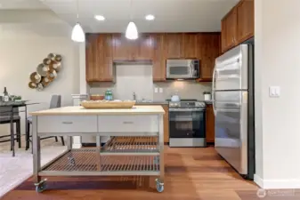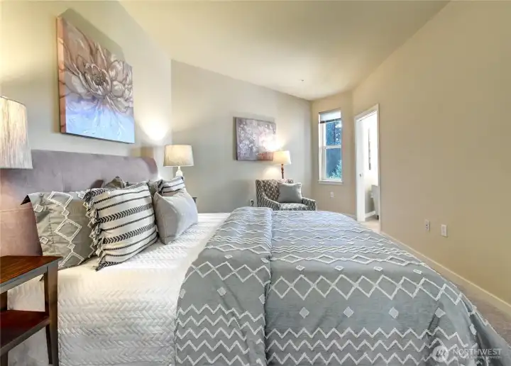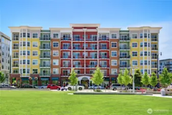 Perfectly positioned 1 bedroom + den condo in the heart of downtown Redmond with sunny southern exposure. Move-in ready with newer flooring and fresh paint. Open floor plan with high ceilings, beautiful finishes and contemporary details. Kitchen has granite countertops, Craftsman-style maple cabinets, moveable island & stainless appliances. Cozy fireplace with stone surround. Patio off of living room overlooks the courtyard and Redmond Connector Park and trail. In-unit laundry and separate additional storage. Secure building & parking with media room and fitness center. Walk to shopping, restaurants, transit, parks & trails. Easy access to 520 and just blocks away from the light rail station. Solid HOA and No Rental Cap!
