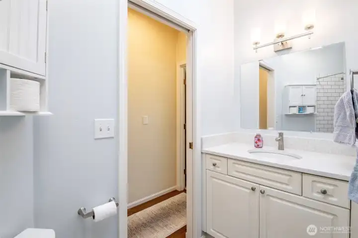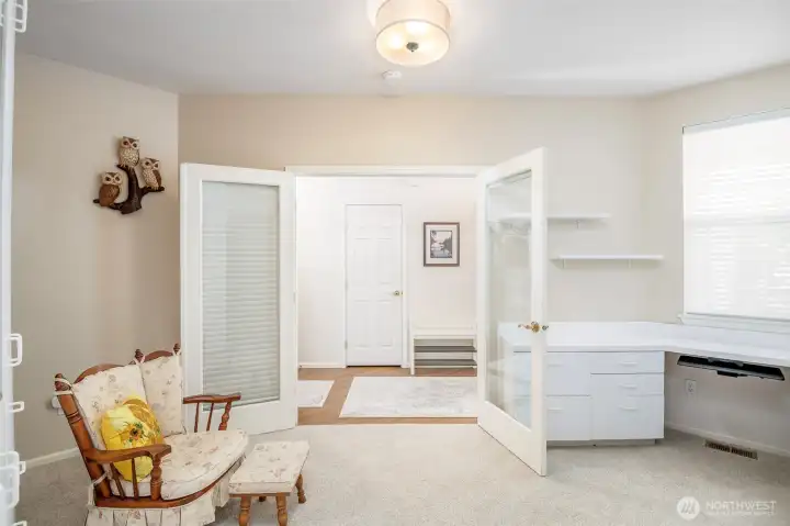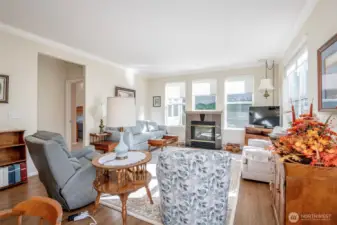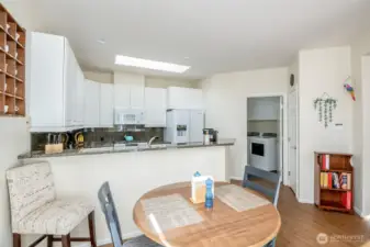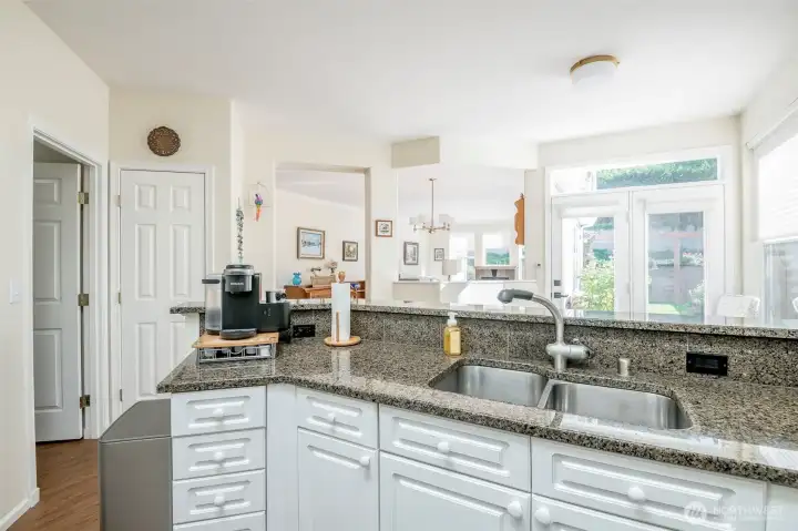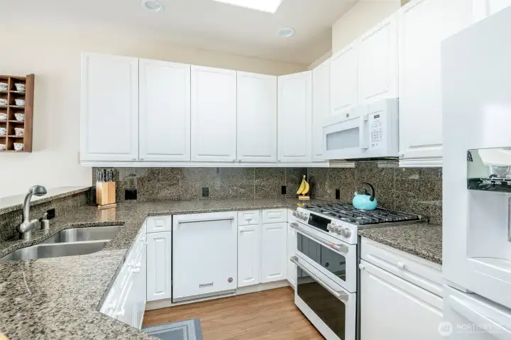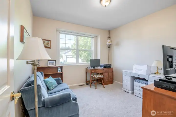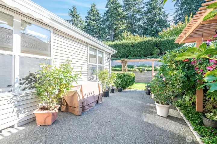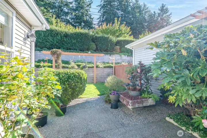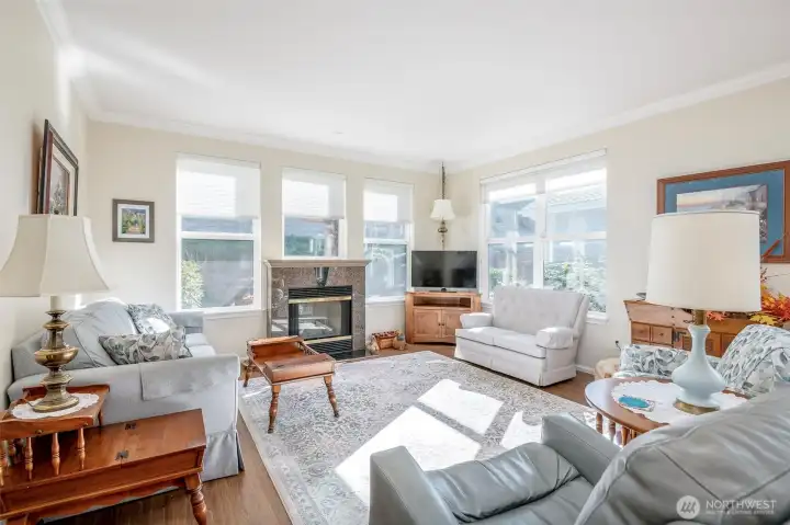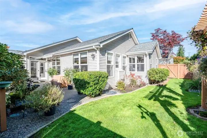 Welcome to The Ranch—a highly sought-after gated community in University Place. This immaculate home offers fresh interior paint, new light fixtures including recessed lighting, and brand-new carpet in the bedrooms. Both bathrooms have been tastefully remodeled with new tile and laminate flooring and modern finishes. The kitchen features newer appliances, and a new washer and dryer are also included. The functional floor plan offers a spacious living room with a cozy gas fireplace, a large primary bedroom, and a den/office complete with a built-in Murphy bed. Newer Furnace, H20 tank, and heat pump! The private, mature backyard includes a tranquil water feature and bird bath—perfect for relaxing or entertaining.