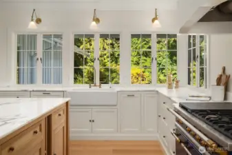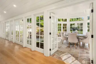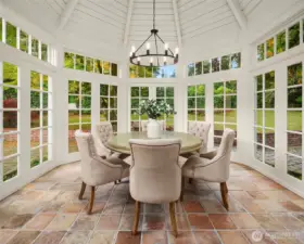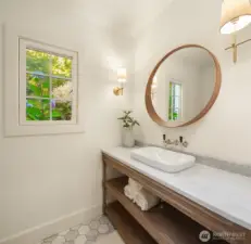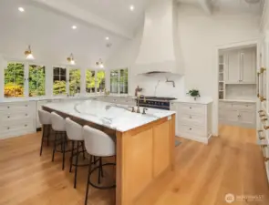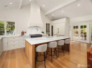 Nestled in Woodway w/ rare understated luxury; 4-bed rambler rests on 2-acres. Barn, full-sized tennis court, raised gardens & tree house. Light floods in the array of French doors & expansive windows for seamless indoor/outdoor flow to multiple gathering spaces. French kitchen open to family rm. Calacatta marble counters, custom cabinetry, Lacanche range w/ dual ovens (1elec, 1gas) & pot filler. Bev drawers, wine fridge, Sub-Zero + butler’s pantry w/ 2nd dishwasher. Orangery dining rm blends seamlessly w/ house. Grand soaring entry. Formal living w/ all of windows & gas FP. Millwork & designer lighting. Spacious den. Primary suite w/ vaulted ceilings, gas FP & ¾ en-suite. Window-seat nooks & built-ins. Mudrm. Mature landscaping surrounds.