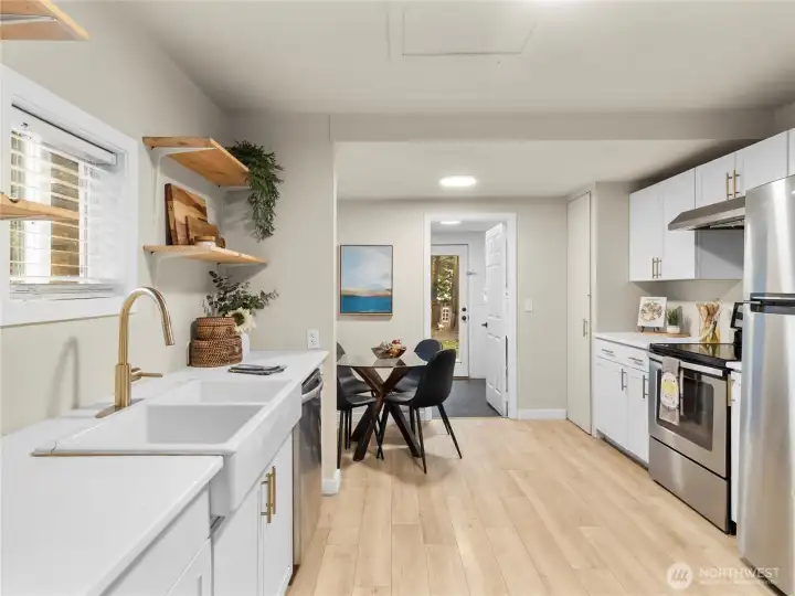 Make yourself at home in this Bremerton classic, ideally located near the PSNS shipyard, Seattle ferries, Highway 16 & walking distance to bus routes, Charleston District shops, breweries & restaurants. Wonderfully updated, this 2 bedroom, 1 full bathroom home is move in ready with a great floorplan making every inch count. Explore warm-toned vinyl plank floors, newer appliances, fresh paint throughout & plentiful storage nooks. Large utility room opens to a magical backyard w/ patio, gardens & room to entertain. Don't miss the bonus cottage-style shed w/ loft, perfect for extra studio/office potential. Fully fenced & private backyard. Covered front porch entry gives privacy & the driveway has ample parking room, even room for a boat/RV.