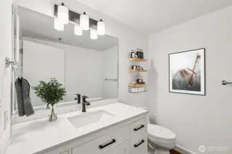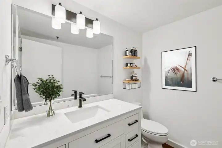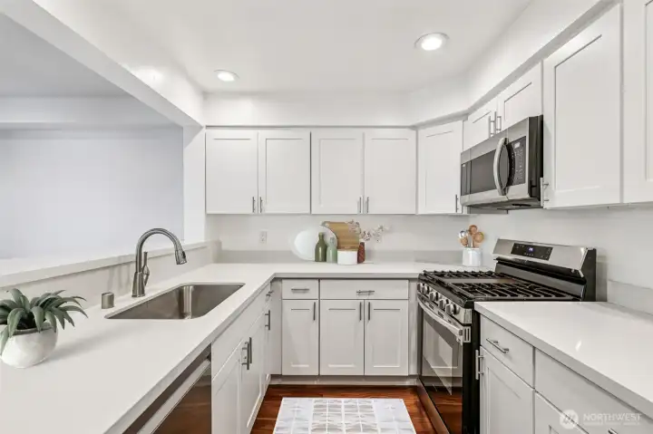 Stunning two story townhouse style unit at Nautica condominium in South Lake Union. Extra large 2bd home underwent major remodel in 2023 and is in like-new condition! Main living floor features open spaces, private balcony with peek-a-boo view of Lake Union. Updated kitchen with stainless steel appliances and eating space, quartz countertops and LVP flooring throughout. Upper level features two large, fully renovated bathrooms. Primary bedroom boasts spacious walk in closet with sunroom/storage space. Rooftop deck with city and lake views. Two dedicated garage parking spaces, two spacious storage units. Updated building with strong HOA. Prime location in SLU, walking distance to Amazon HQ, Google and Meta.