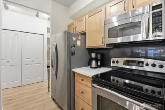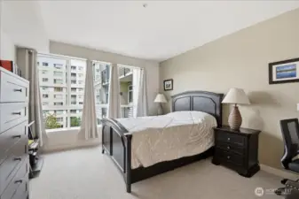 Experience urban living at its best in this beautifully remodeled Downtown Bellevue condo. This 1-bedroom plus den home features a spacious primary suite with large closets and an ensuite bathroom, an open layout with a gas fireplace, and a private deck. The kitchen shines with granite countertops, newer cabinets, and stainless steel appliances. Enjoy the convenience of a full-sized washer and dryer, two parking spots in a secure garage, and a private storage unit. HOA dues include water, sewer, garbage, and gas. Ideally located within walking distance to Bellevue Square, The Bravern, restaurants, shops, parks, and the future light rail station. No rental cap allows for optimal flexibility in the ever growing downtown Bellevue neighborhood!