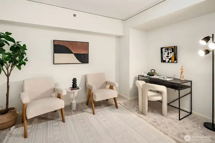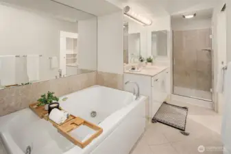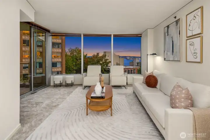 Best value available in Downtown Seattle! Spacious 1BR+DEN, which could double as a 2nd BR w/ its own bath. Steps to Pike Place & the revamped waterfront. This SW-facing home is drenched in natural light through oversized windows framing tranquil views of the garden terrace & protected views of Elliott Bay, visible from both main room & bedroom. Features incl. Central A/C, newly refinished patio, Sub-Zero fridge, granite kitchen counters/floors, fresh paint/carpet, limestone entry. Versatile den w/pocket doors doubles as guest room/flex space. Primary BR offers full en-suite bath + separate 3/4 bath for guests. Amenities: 24/7concierge, indoor pool/spa, gym, event room, view terrace. Garage parking. No rental cap & well-managed building!