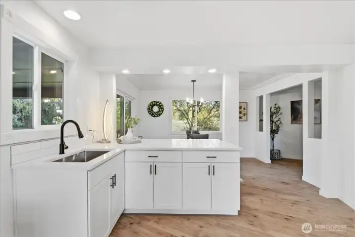 Beautifully remodeled 3000sf day-ranch! Walk to the Cowlitz river from your backyard! 4 bedrooms 3 baths, Open bright and light with NEW luxury vinyl plank flooring. 2 cozy brick fireplaces. Formal dining room, Spacious remodeled like NEW kitchen with quartz counters, NEW stainless appliances. NEW carpet and paint, 2 large bedrooms on the main. perfect set up for multi-gen living 2 big bedrooms plus bonus/office down. tons of storage. 2 car carport plus storage shed. Covered deck for entertaining, Private backyard with water feature. RV parking, walk to the river from your peaceful backyard.