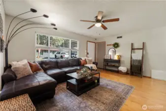 Welcome home to this adorable 3bdrm/1 bath rambler offering comfortable 1-level living. The Exterior was just re-painted! & home has newer windows. Walk-through kitchen boasts a gas range & SS appliances. Bonus room off of dining area adds extra flexability for an office, playroom or rec room. Step out to the covered back patio for year round relaxation & BBQ'ing, or enjoy making S'more's around the firepit. Fenced backyard w/room to garden or play & storage shed, as well as a sprinkler system for ease of watering. Garage door opens to a work/storage area. Easy access to schools, shopping & commuting routes. Enjoy the Clubhouse, Pool, Play area or Sport Court. This one's move-in ready and full of charm-come make it yours!
