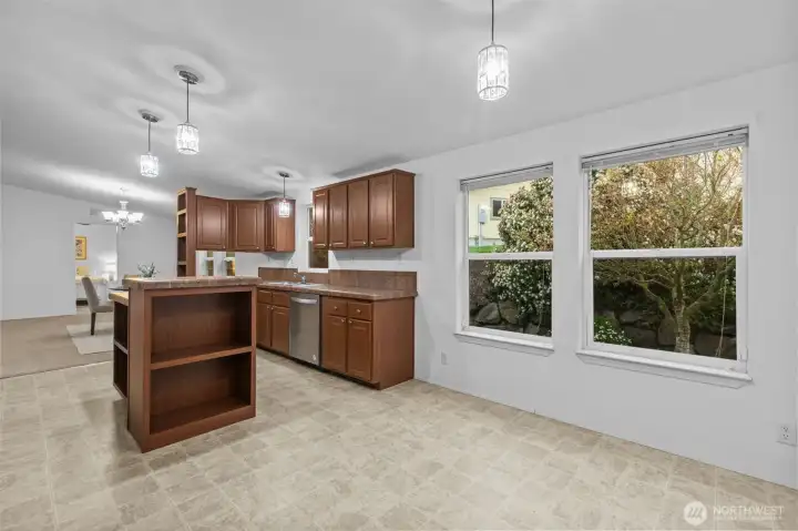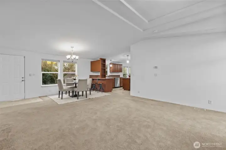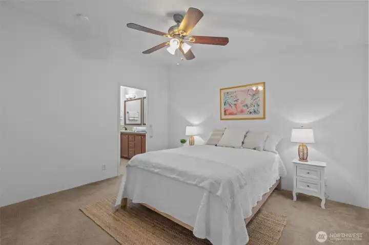 LOWEST PRICE IN THE PARK! Peaceful living awaits in Golden Valley Estates, a desirable 55+ gated community. This 3-bed/2-bath 1,566 sf manufactured home features a spacious primary suite w/walk-in closet and generous bath. 2 additional bedrooms + bath are set apart for privacy, ideal for guests or a home office. An open living room w/vaulted ceilings, abundant windows and a cozy fireplace flows into the kitchen w/ample counters, cabinets, and pantry. Attached 2-car garage provides extra storage. Backyard is ready for your vision-garden, patio, or retreat. Home is solid and priced so you can update finishes to your taste. Close to shopping, dining, and services in Bonney Lake/Buckley offering tranquility and convenience.