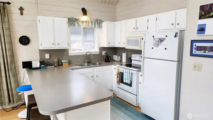Centrally located Birch Bay Village cottage, located within walking distance to the pool, clubhouse, golf course pro shop, tennis/pickleball courts, beaches and marina. This home could either be a full time or vacation home. 3 potential bedrooms and completely remodeled full bathroom. Many upgrades, including, newer vinyl plank flooring, new windows, new cement planked siding, direct vent gas wall furnace, fiberglass front door with storm door, Bosch dishwasher, and more. Large fenced yard with oversized single car garage. Birch Bay Village has 24 hour manned gated security with private quiet roads and is golf cart friendly. Don't miss out on this affordable updated home in one of the most sought after neighborhoods in the area.