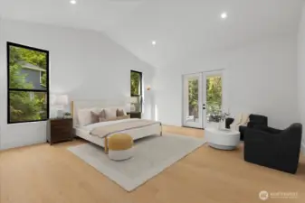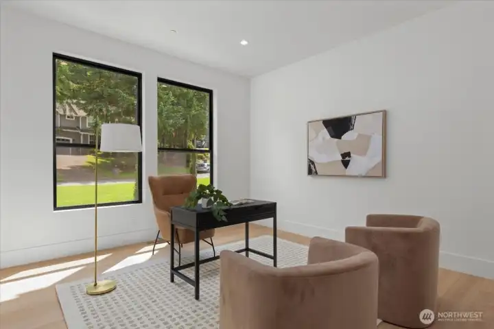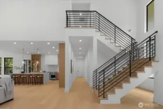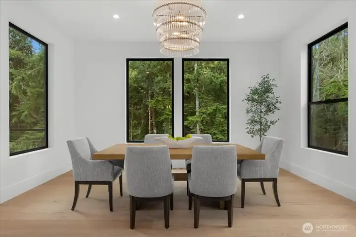 Luxury new construction in Canterwood Country Club. The grand entry opens to a soaring 20-ft ceiling living room with wide-plank oak floors, plaster fireplace, and oversized picture windows. Chef’s kitchen showcases a 9-ft waterfall island, Sub-Zero and Wolf appliances, plus a second prep kitchen with high-end appliances and Gaggenau wine fridge. Main-floor primary suite offers vaulted ceilings, steam shower, spa bath, walk-in closet, and private deck. Upstairs includes three bedrooms, one serving as a second primary suite with private deck. The lower level adds 2,000 sq. ft. with full kitchen, private entry, and covered patio. The .47 acre lot backs to a protected green space. Enjoy Canterwood’s gated golf, clubhouse, pool, and amenities.
