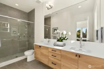 Introducing The Brixton by JayMarc Homes. Notice the grand two-story volume in the great room create a grand sense of space. In the Chef’s Kitchen, oversized pantry, and a beverage cooler. A main floor media space is perfect for movie nights. The main floor guest suite offers comfort for extended stays. Upstairs features a luxurious primary suite with heated bath floor, oversized shower with bench, and walk-in closet. Three additional bedrooms with en-suite and Jack & Jill baths complete the upstairs space. Outdoor living on the covered patio and close proximity to parks and shopping.