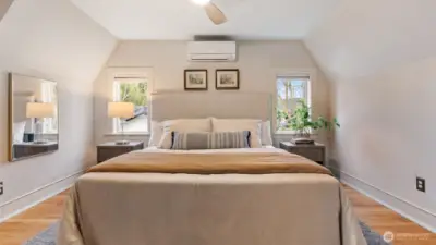 Come home to coveted North Admiral! On a picturesque, flat street close to all your favorite spots, nearly every detail of this classic Dutch Colonial has been refreshed for 21st century living. Warm details like hardwoods, French doors & corner fireplace combine w/ sleek upgrades: remodeled kitchen w/ matte granite counters & induction range, updated electric/lighting, mini-splits, A/C & more. 2 beds upstairs share a remodeled full bath while a detached backyard studio w/ kitchenette gives you extra room & privacy for hobbies or an office. Relax on your patio, enjoy mature landscaping & garden beds or leave the car at home & stroll to dining, parks, shops & Alki. Easy access to the free shuttle to the water taxi & the West Seattle Bridge.